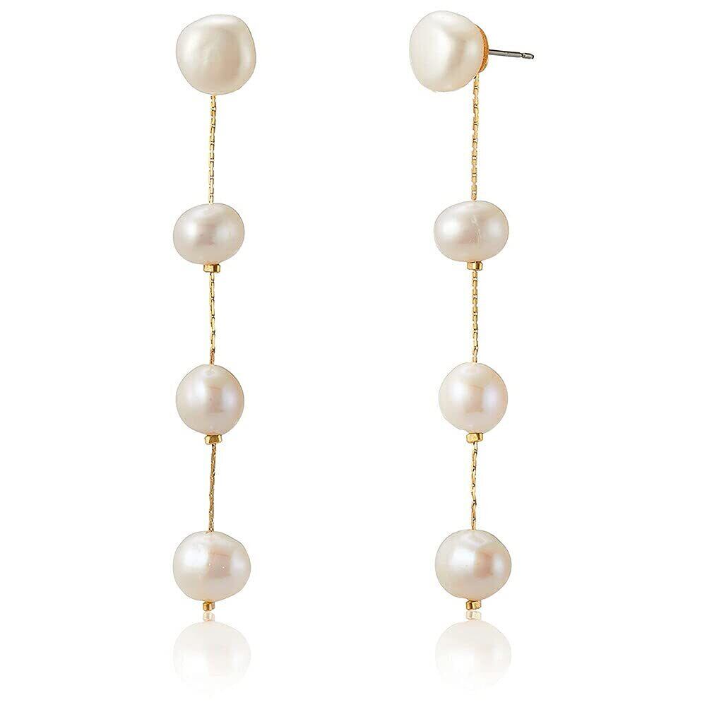 【個体差が愛らしい天然淡水パール】不揃いなバロックスタイルの真珠を連ねたピアス。天然真珠の耀きが肌の艶を引き立てます。ふたつと同じ形のない価値を魅力としてお楽しみください。【2way】直結ピアスとチェーン部分は取り外し可能。シンプルな装いにしたいときは、1粒パールのみでお使いいただけます。お手持ちのピアスと組み合わせたアレンジもお勧めです。