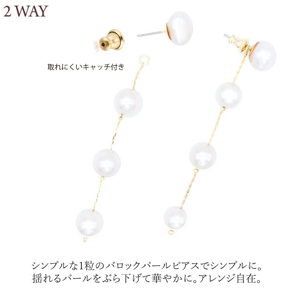 【サイズ】全長:約5~6cm / 直結バロックパール:直径 約6.5~8mm / 下がりバロックパール:直径 約6mm or 約8mm / ポスト線径:約0.5mm ※バロックパール(淡水パール)は天然素材のため、大きさや形状、照り、えくぼ等にバラつきがございますが、素材の味としてお楽しみください。