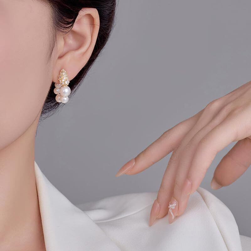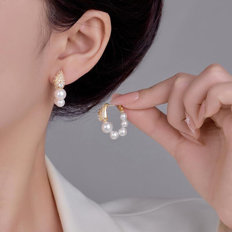 【ASCOMY】パールピアス レディース サージカルステンレス ジルコン 揺れる 金属アレルギー対応 フープピアス 真珠 クリスタルパール シルバー ゴールド 可愛い シンプル ギフトBOX付き