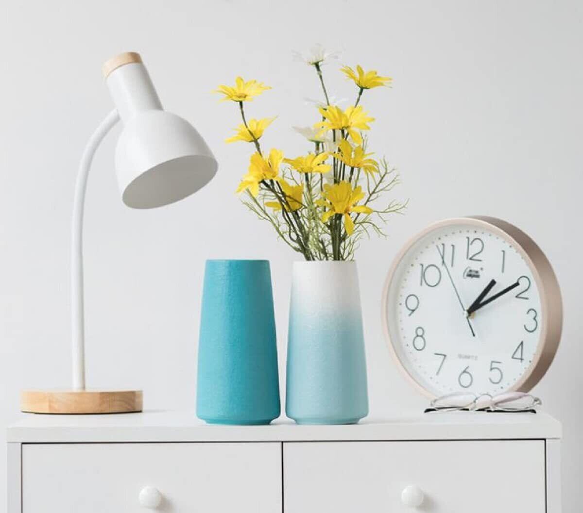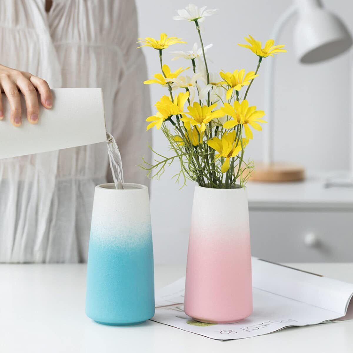 花瓶 フラワーベース 花器 セラミック ホワイトブラック おしゃれ 北欧 陶器 生け花 インテリア 家の装飾 (ホワィト-小さい(高さ:15cm))