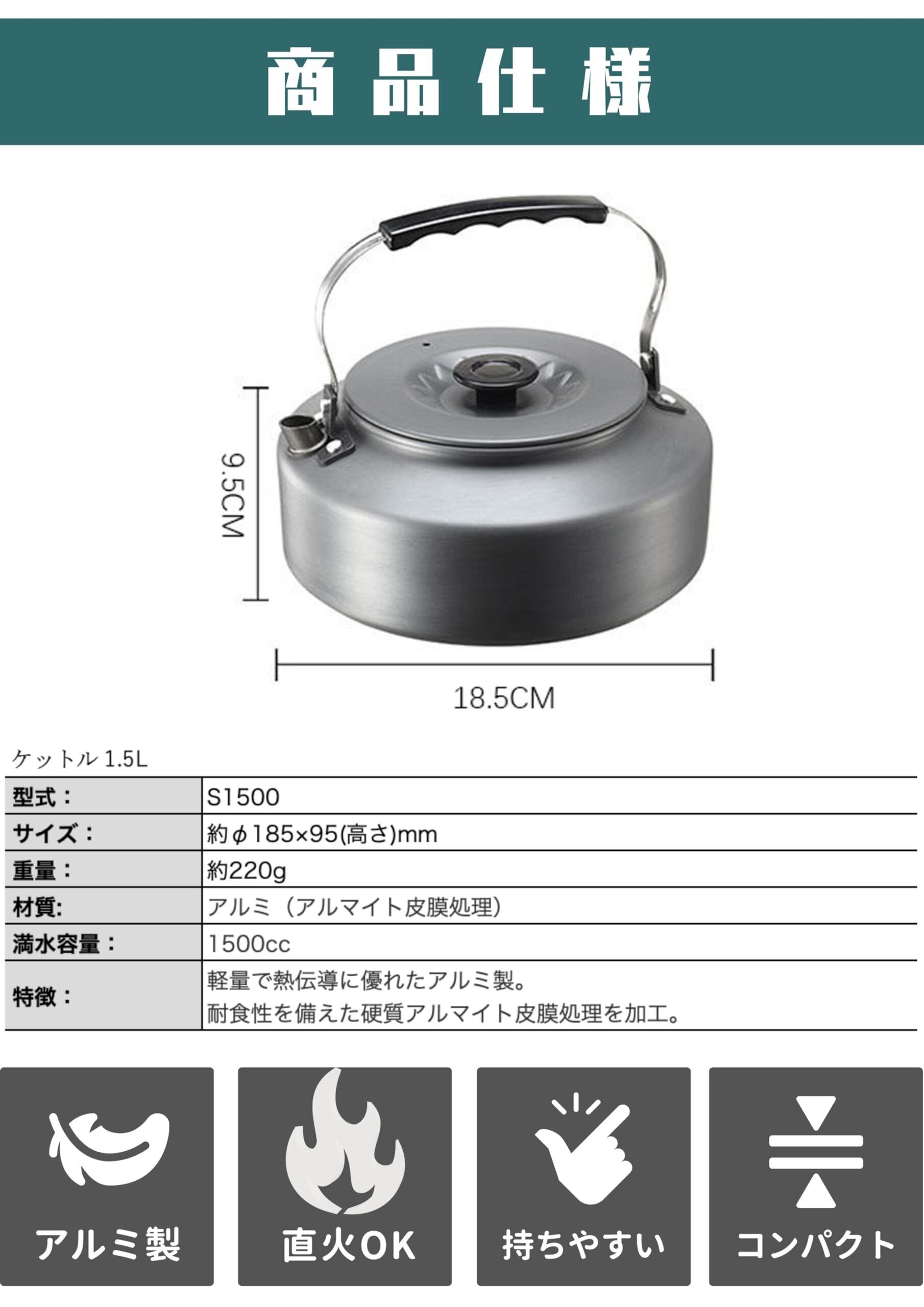 キャンピングムーン(CAMPING MOON) アルマイト フェミナ ケットル ケトル 2-3人用 1.5L S1500