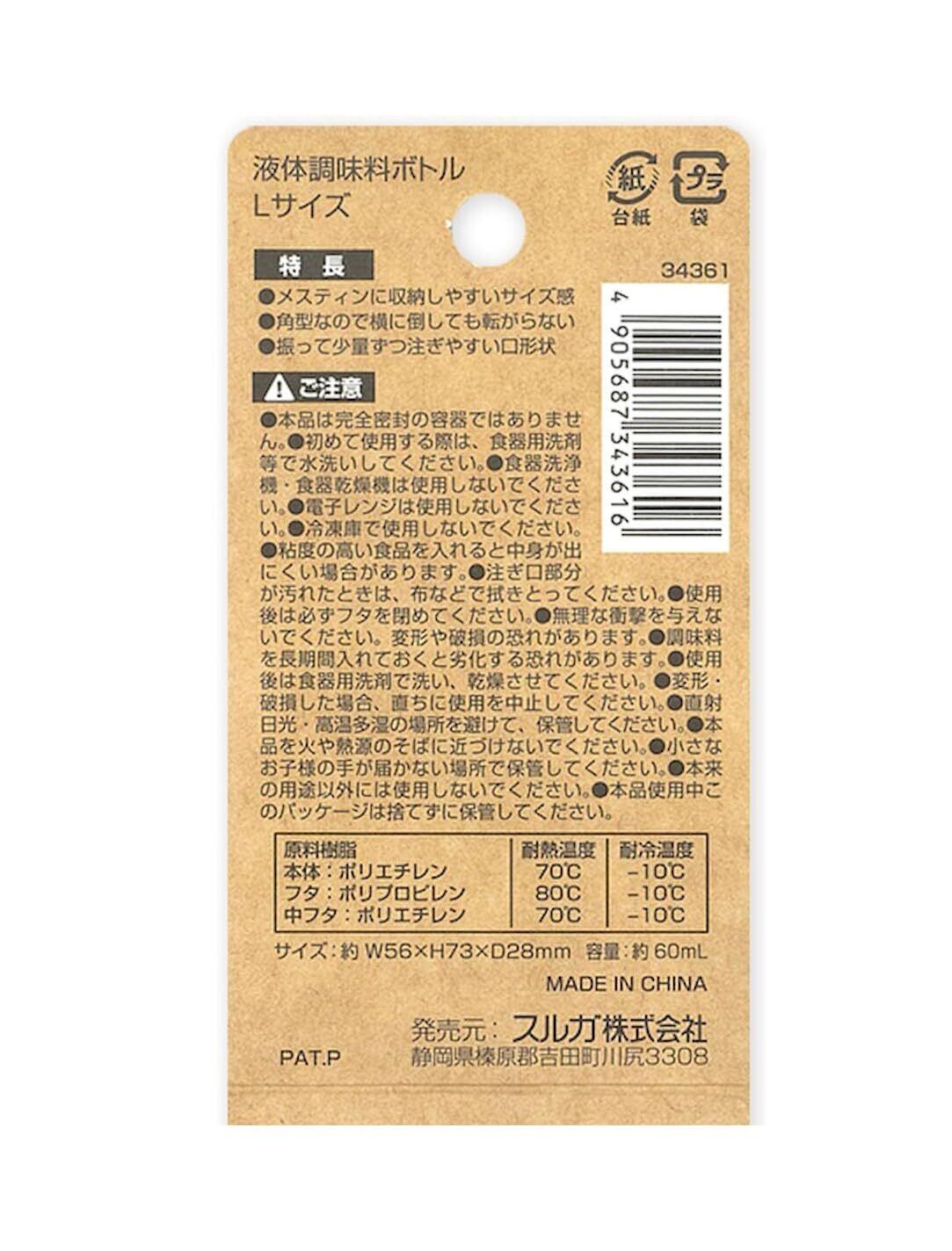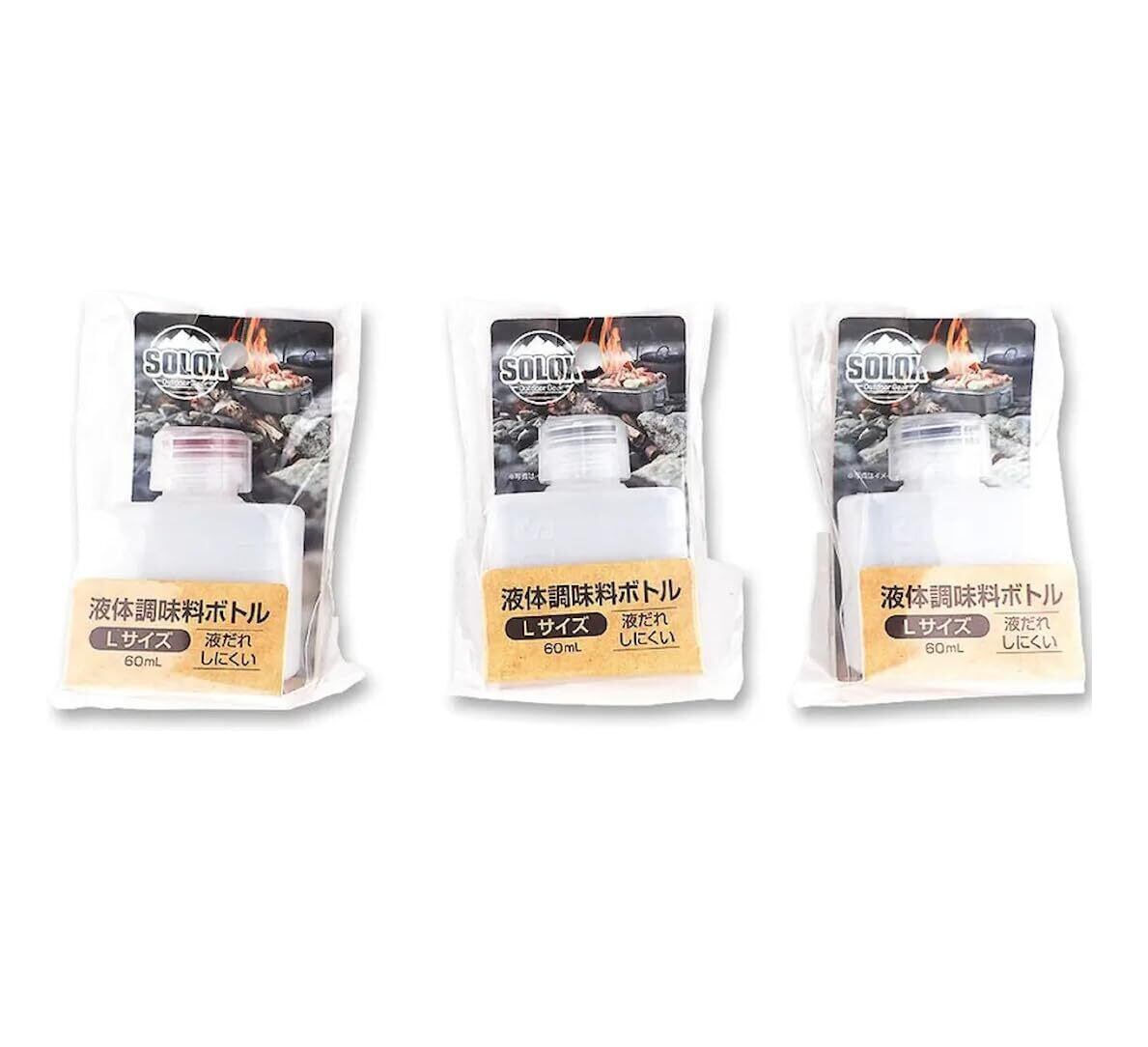 【角型で転がりません! 調味料の持ち運びに】 SOLOX液体調味料ボトル Lサイズ 少量ずつ注ぎやすい! 液だれしにくい口形状 容量約60ml 3色アソート 約7.3×5.6×2.8cm 【2個セット】