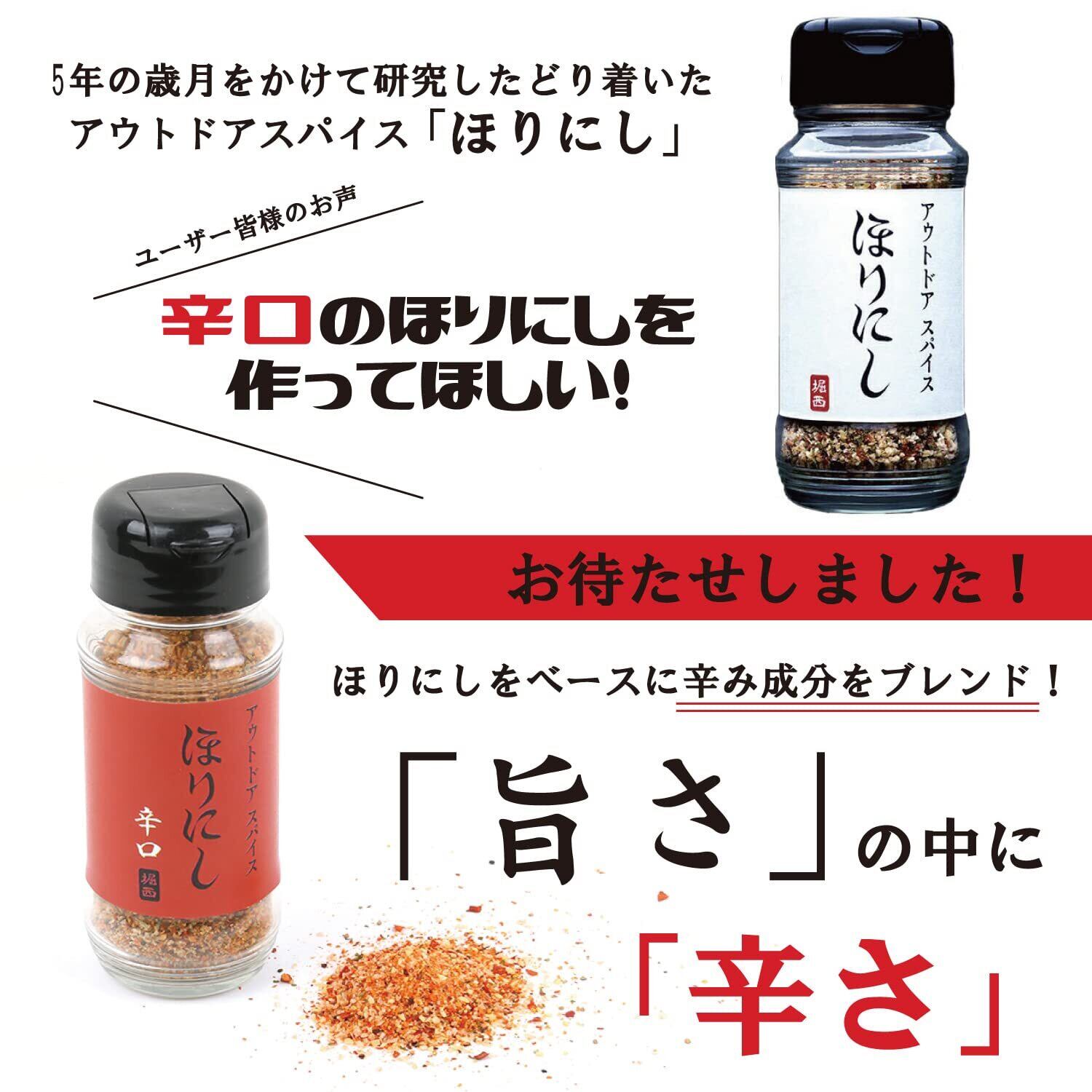 アウトドアスパイス ほりにし と ほりにし 辛口 の2本セットにアウトドアスパイス ほりにしステッカー付き!