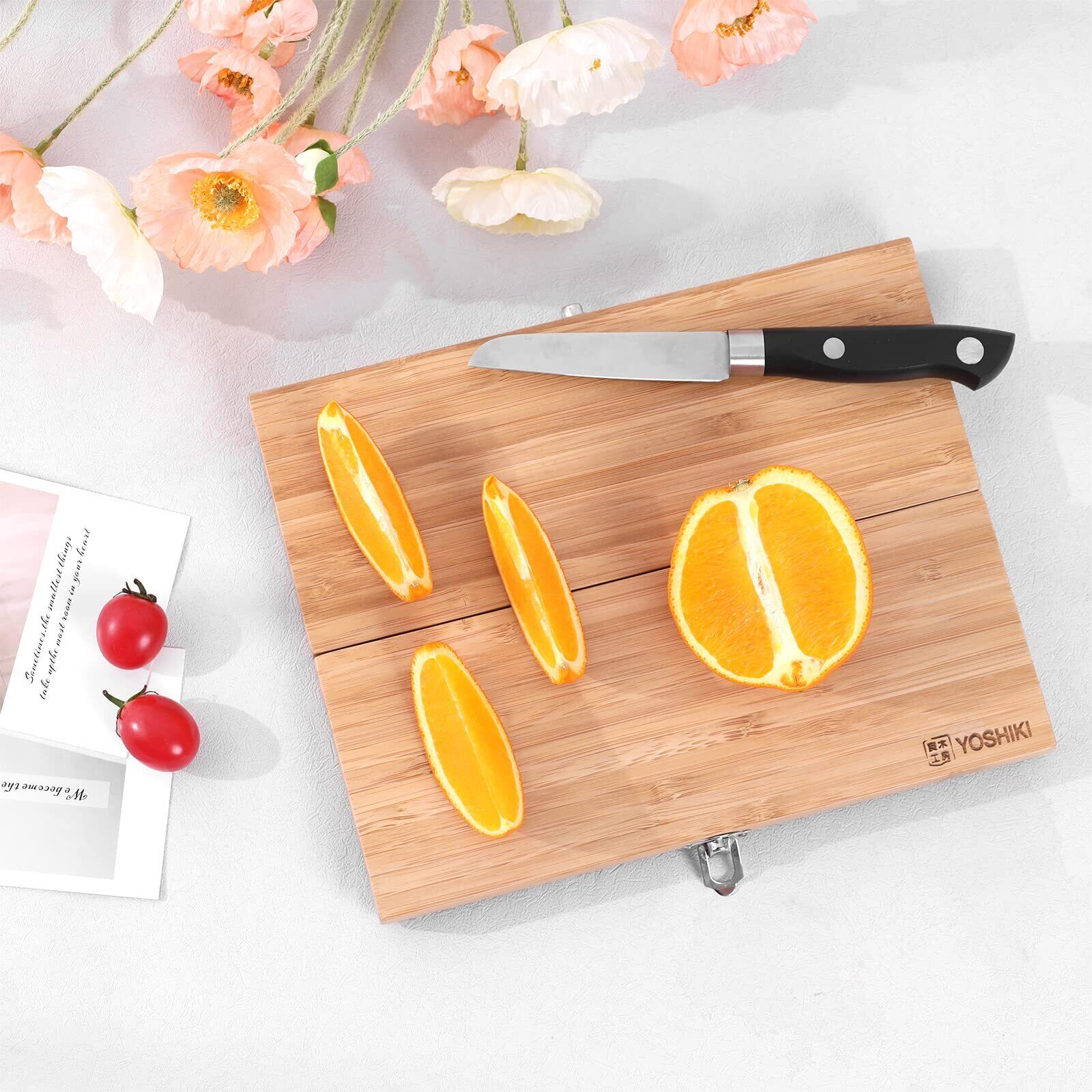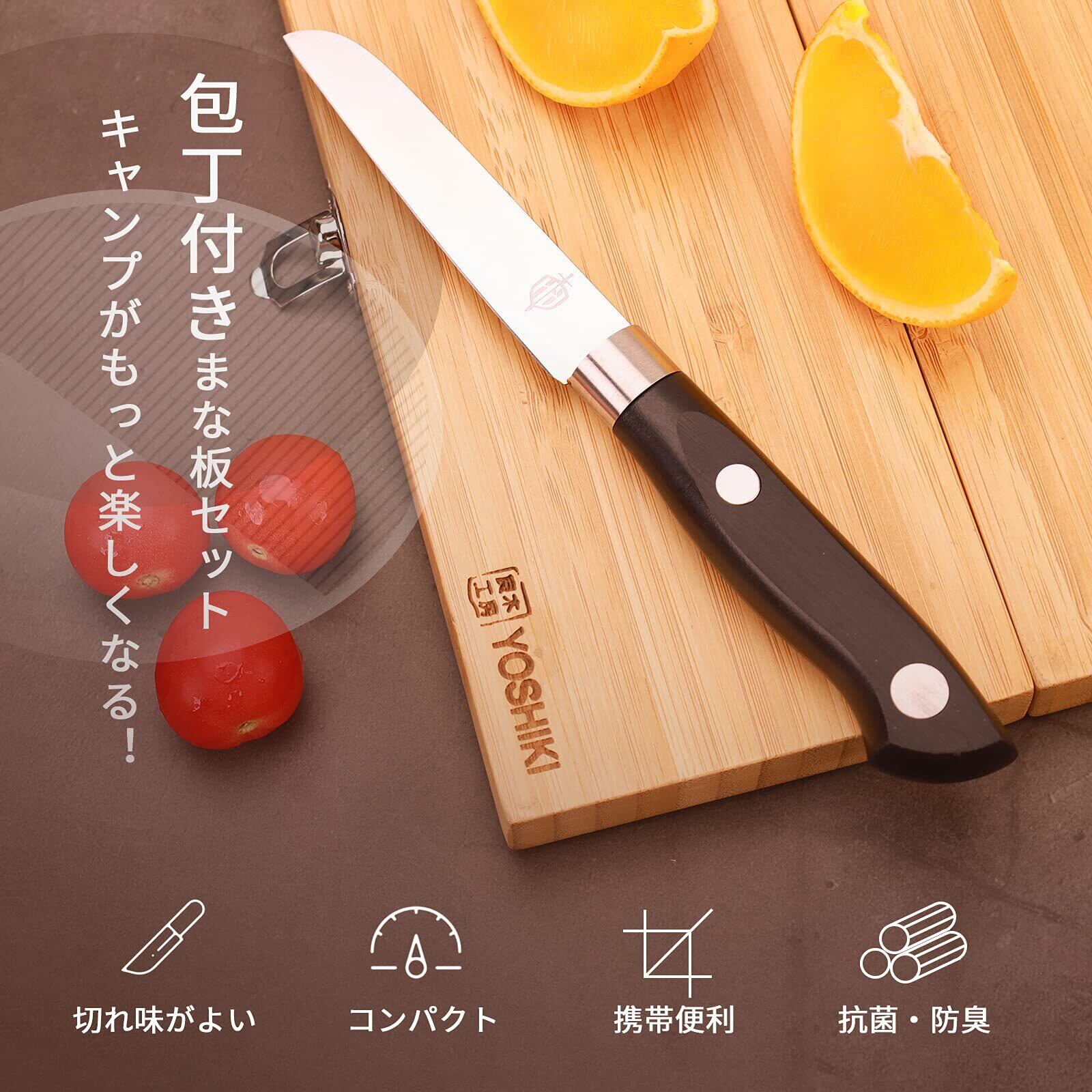 【FSC認証製品】良木工房(YOSHIKI) 竹製 まな板 包丁セット キャンプ 折り畳み 俎板包丁セット 携帯便利 収納袋付き ソロキャンプ アウトドア用(M) SDGs 脱プラ YK-KBM1