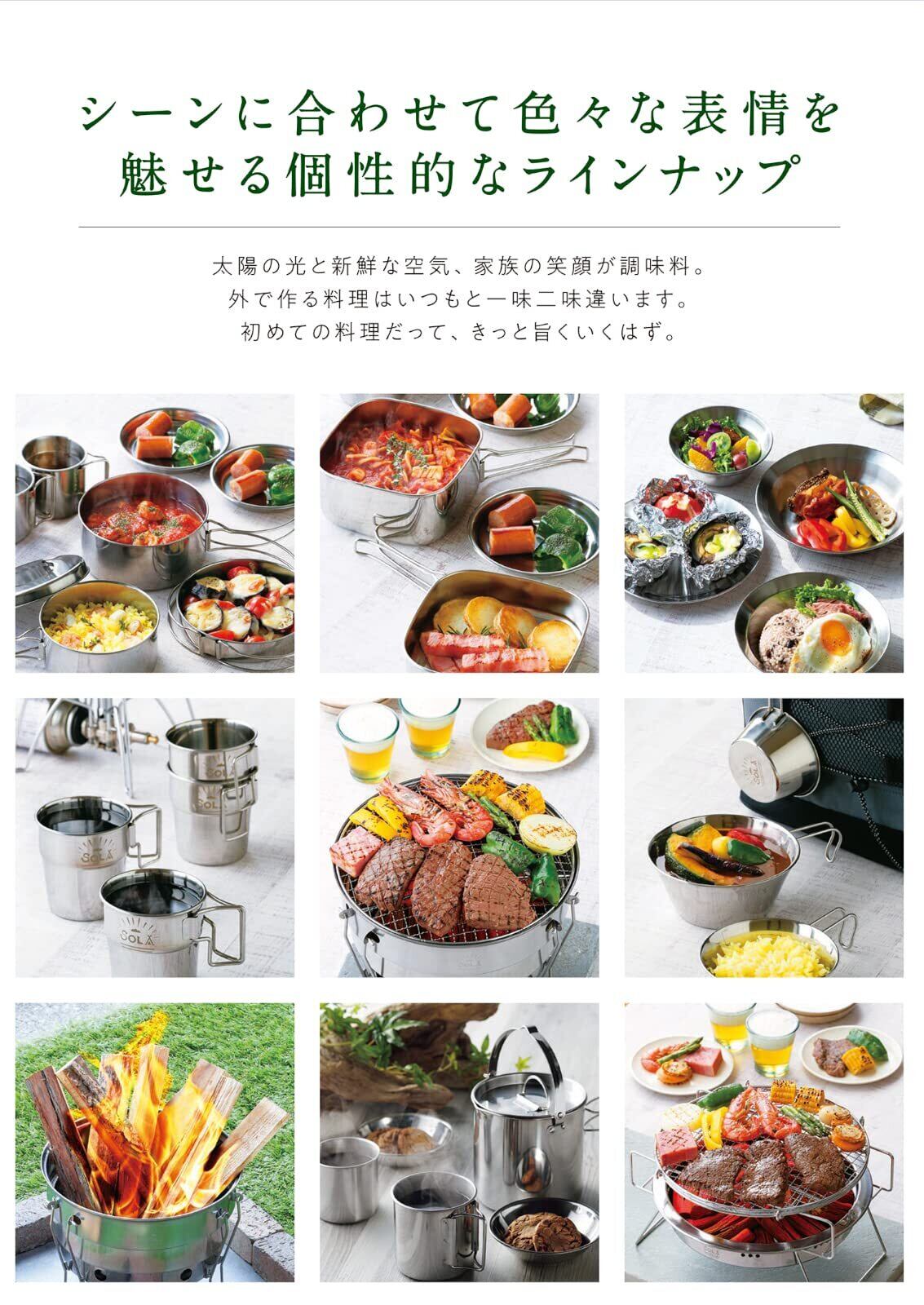 カクセー アウトドア クッカー 丸型 8点 セット ステンレス 鍋 フライパン 皿 マグカップ 直火 コンパクト収納 袋付き キャンプ SOLA ソラ PP-02