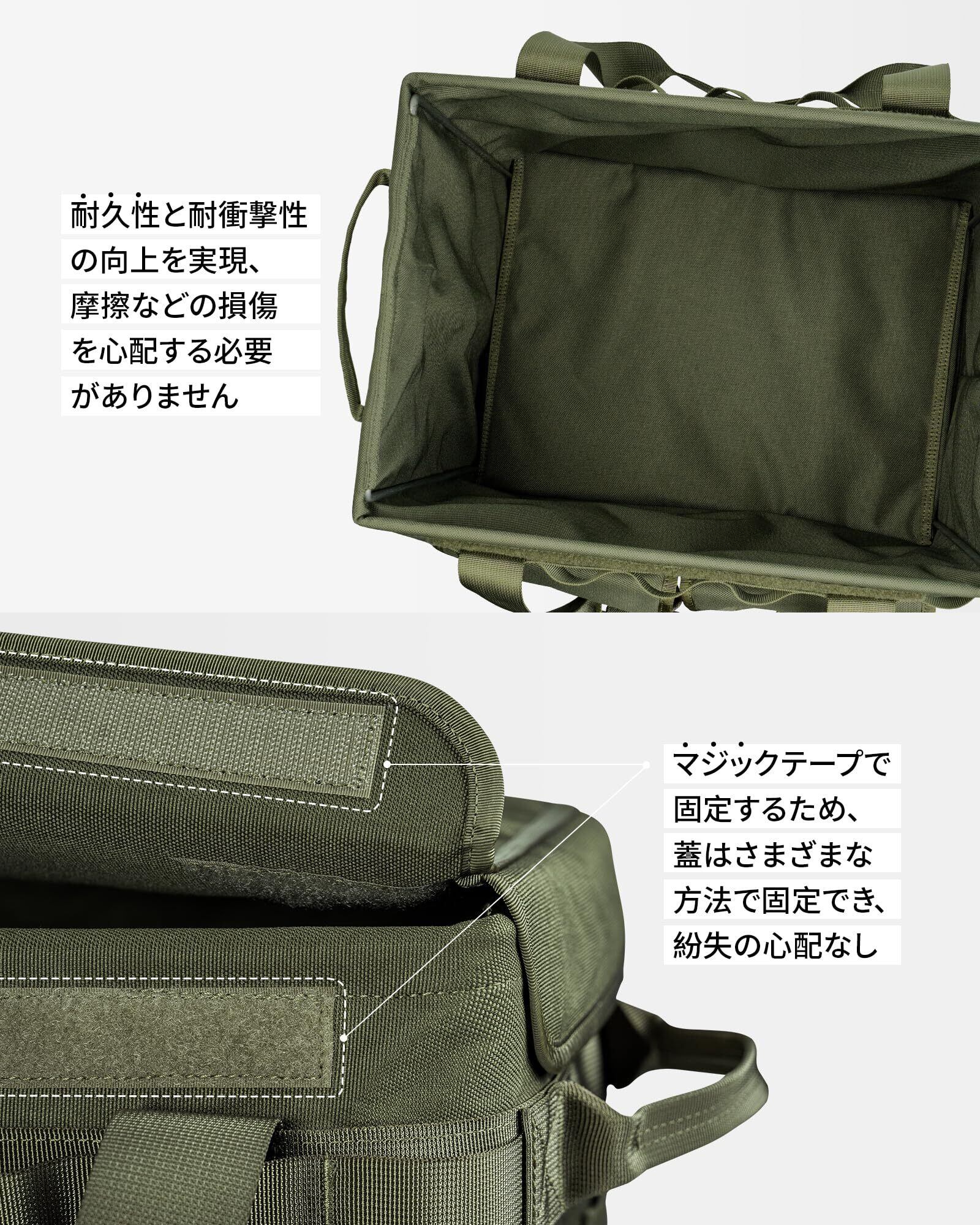 【蓋付き・2WAYキャリーハンドル】取っ手が太く広くなり、握り心地がよく、持ち運びが簡単です。取り外し可能な蓋付き、2つの取り付け方法と収納方法があり、ベルクロ固定、いつでもケースの周りに固定、紛失の心配なし
