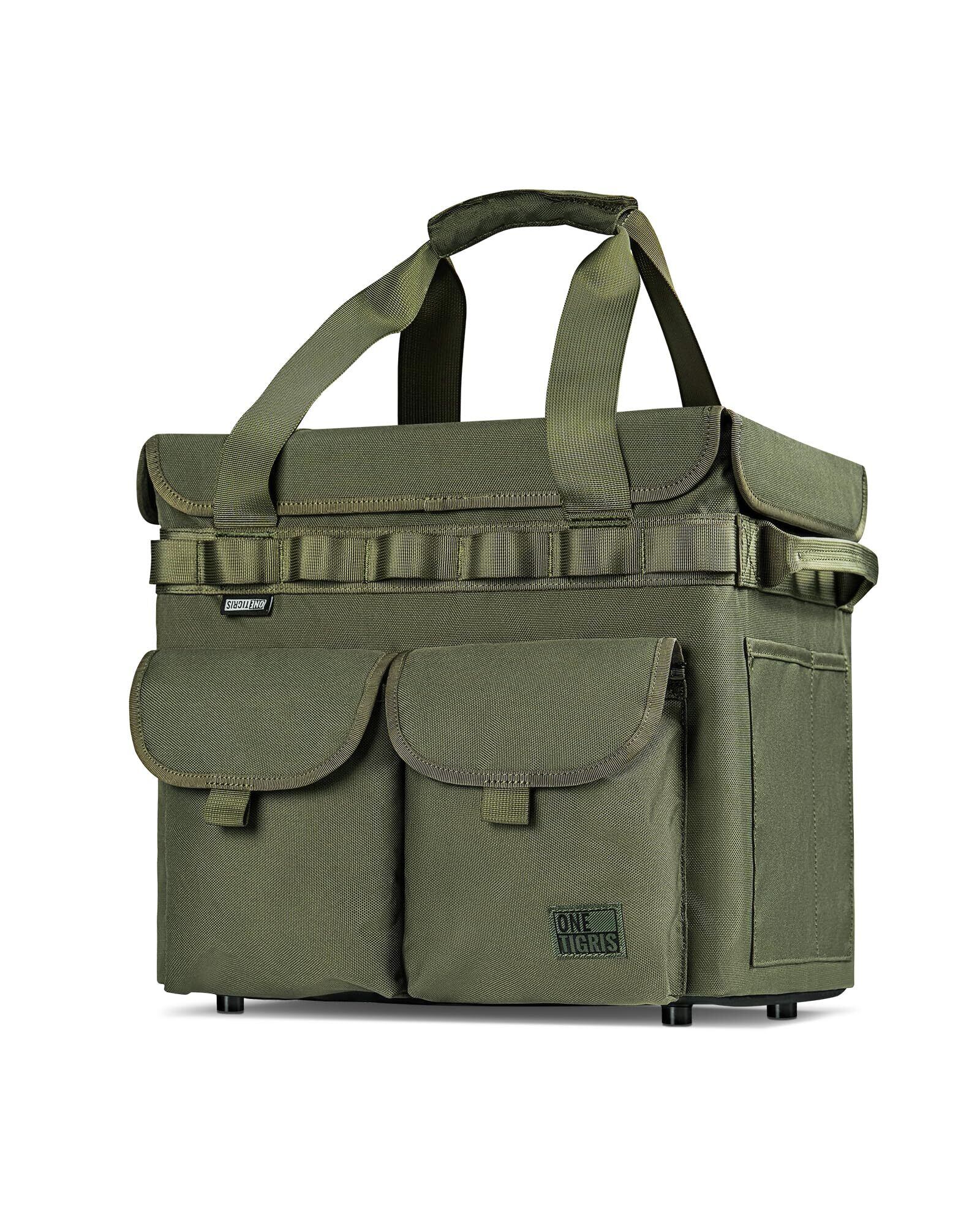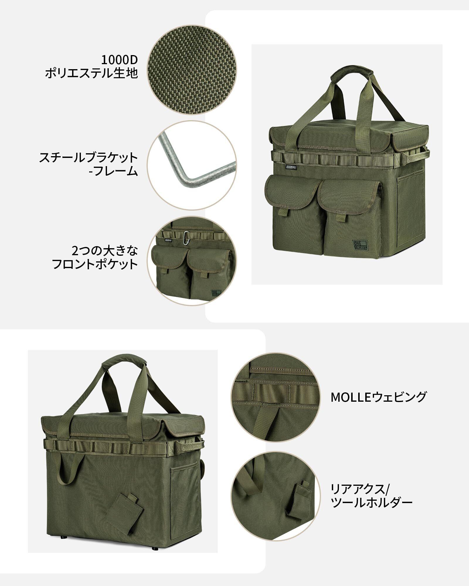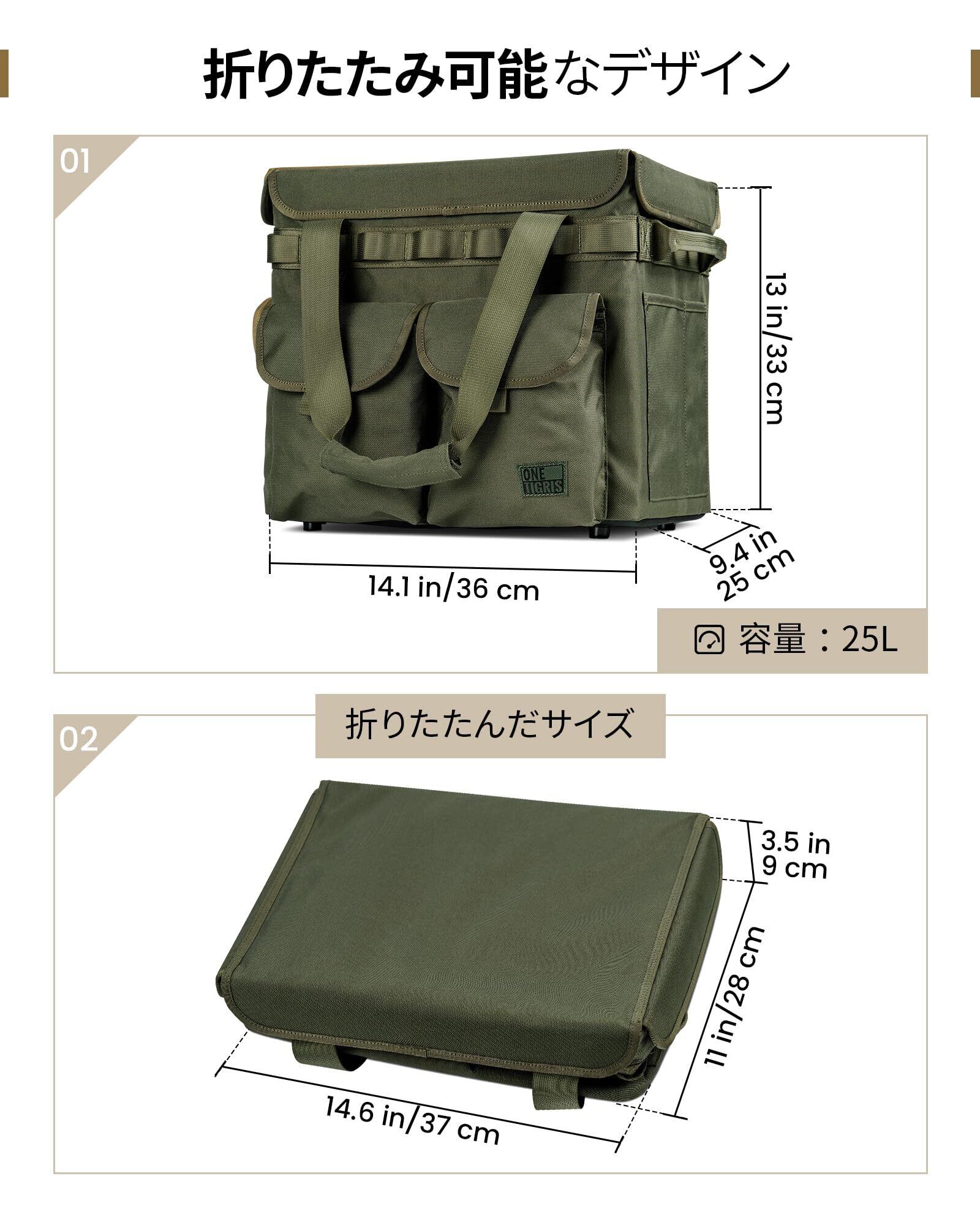 OneTigris アウトドア収納バッグ 折りたたみ式キャンプバッグ 蓋付き 高い防水性の底 足付き 25L大容量 撥水 MOLLEとポケットあり 2WAY取っ手付き 1000D ポリエステル 直径5mmフレーム