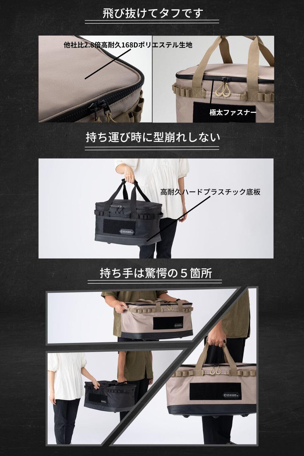 ChillCamping(チルキャンピング) キャンプ 収納ボックス コンテナボックス ツールボックス アウトドア 大容量 (カーキ, M)