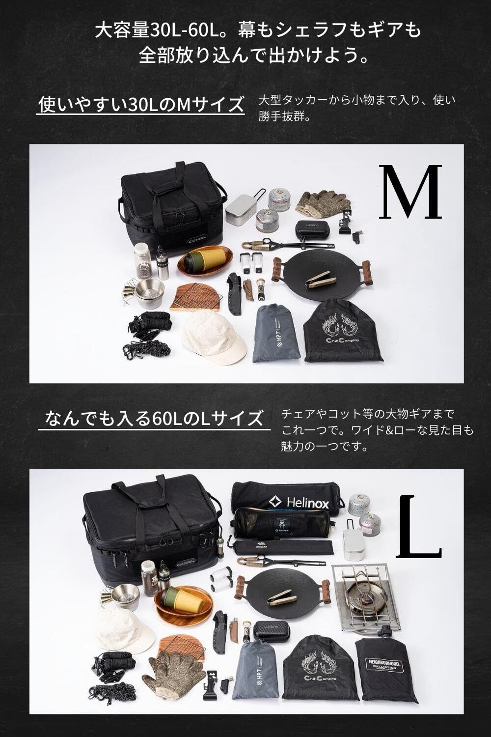 Chill Camping ソフト収納ボックスMサイズ、Lサイズ】