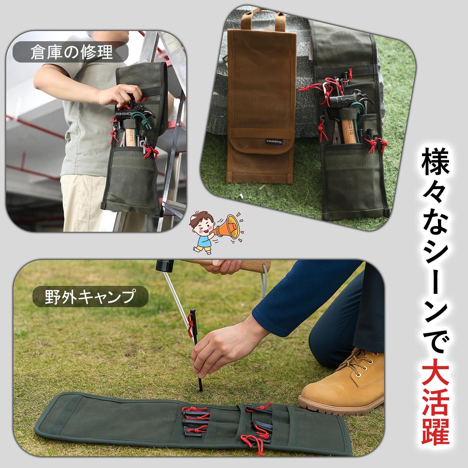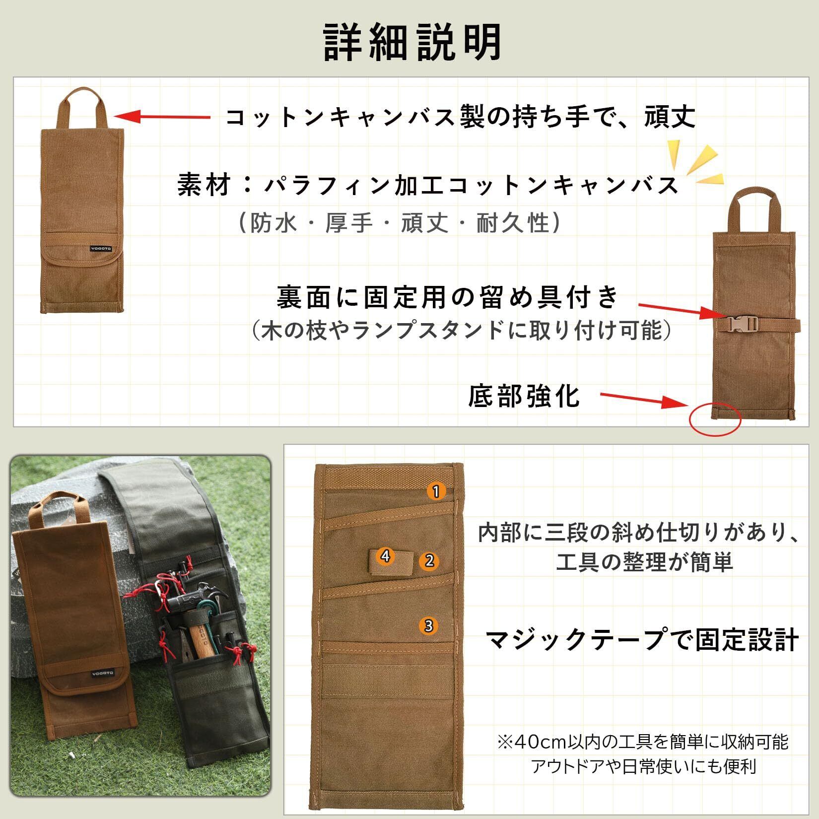 【YOGOTO Xシリーズ】ペグハンマーケース ペグケース 40cm対応 防水 頑丈 コットンキャンバス製 キャンプ アウトドア 収納バッグ オリーブ