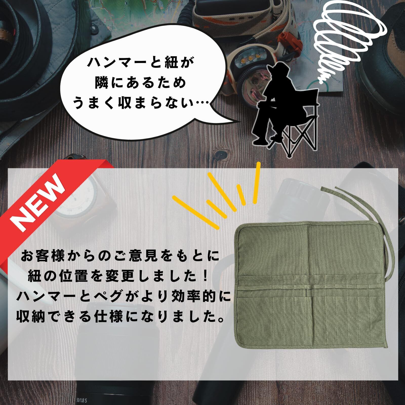 ペグを1本ずつ収納できる。帆布製ペグロールケースです。大切なペグの紛失防止に繋がります。