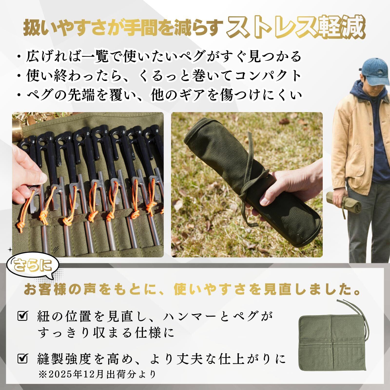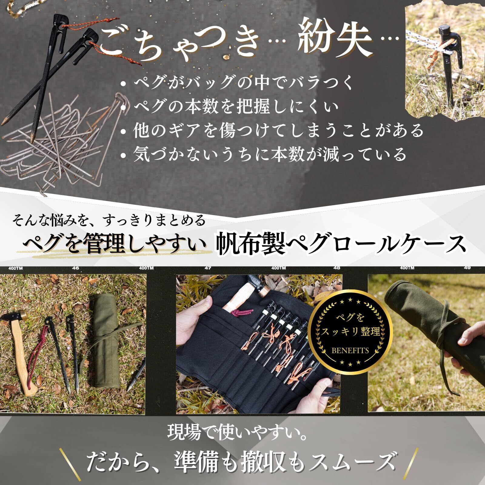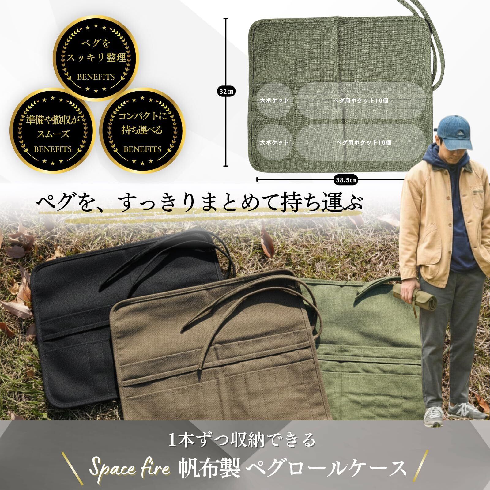 Space fire ペグケース ペグ収納ケース 帆布製 エリッゼ 30cm 鍛造ペグ対応 (オリーブ)