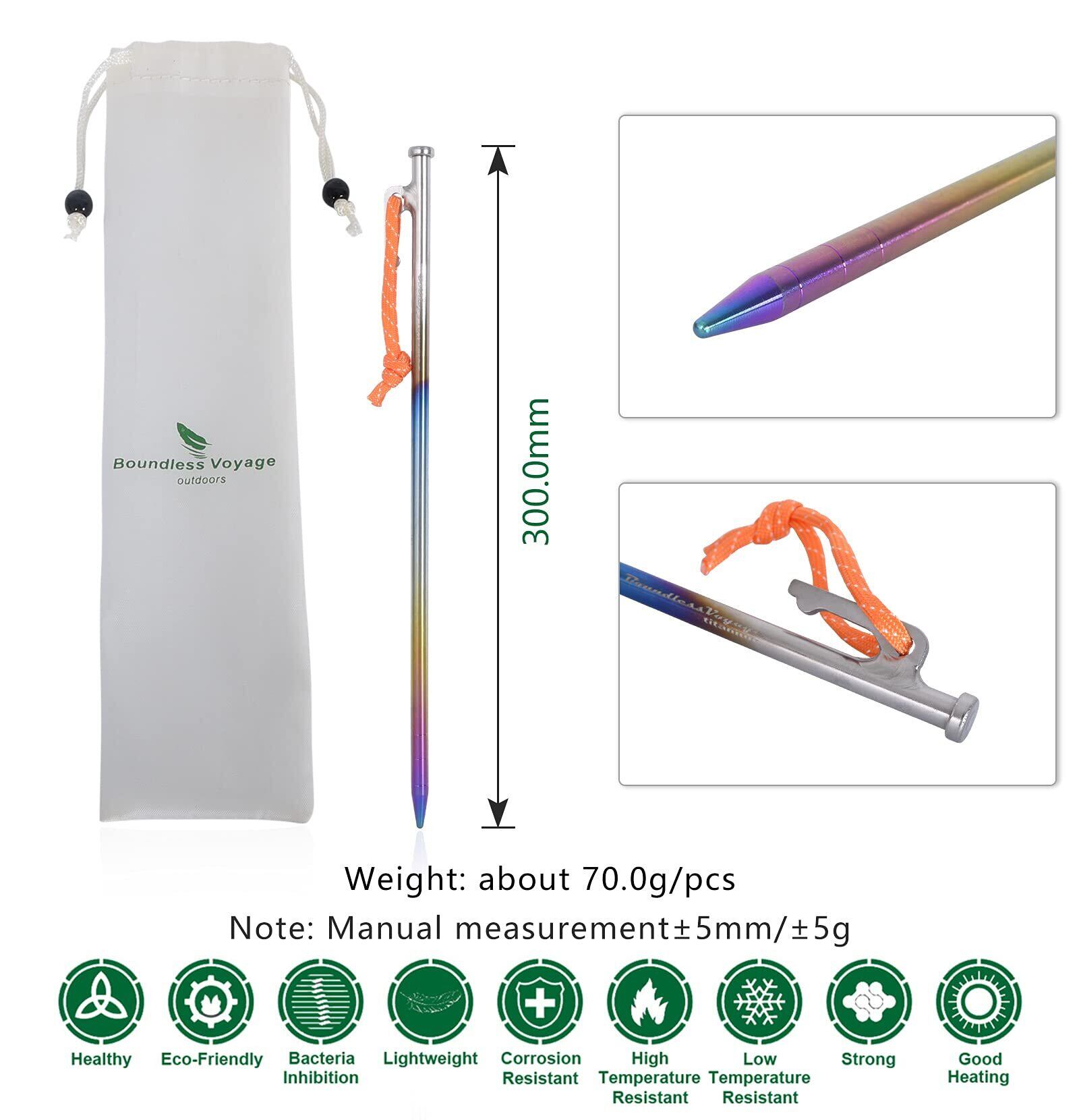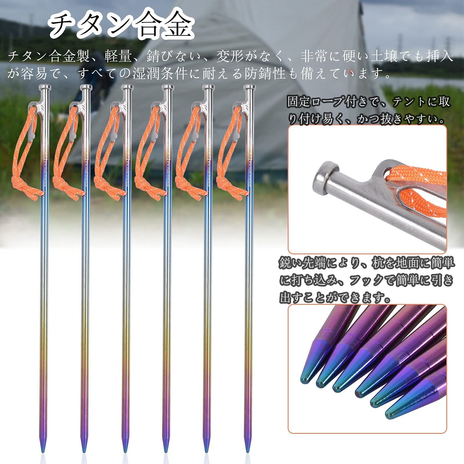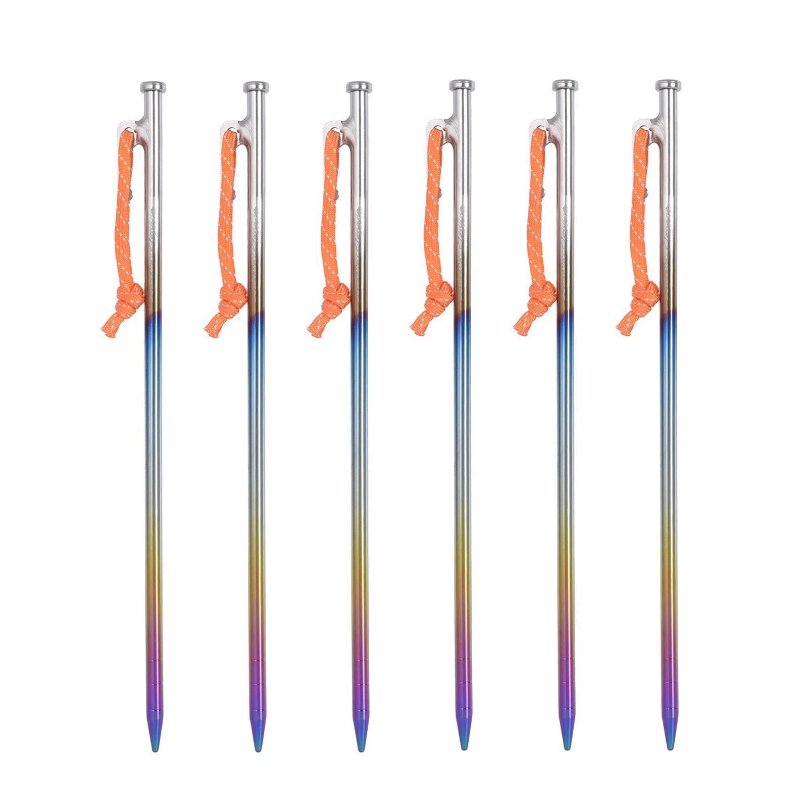 チタン合金製のペグ、超軽量、曲げない、耐腐食性、耐久性に優れています。チタンの自然な特徴であるので決して錆びません。
