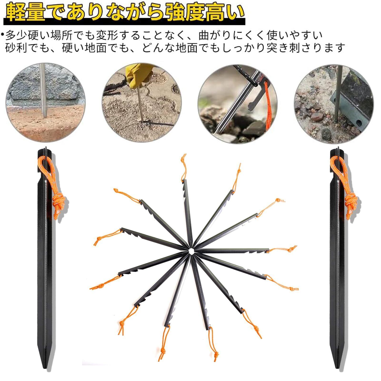 【どんなシーンにも対応可能】柔らかい地面、硬い地面、砂利の地面など、あらゆるサイトで幅広く使えます。設営後も強めの風が吹いていましたがビクともせず、安定した抵抗力でテント・タープをしっかりと保持してくれます。