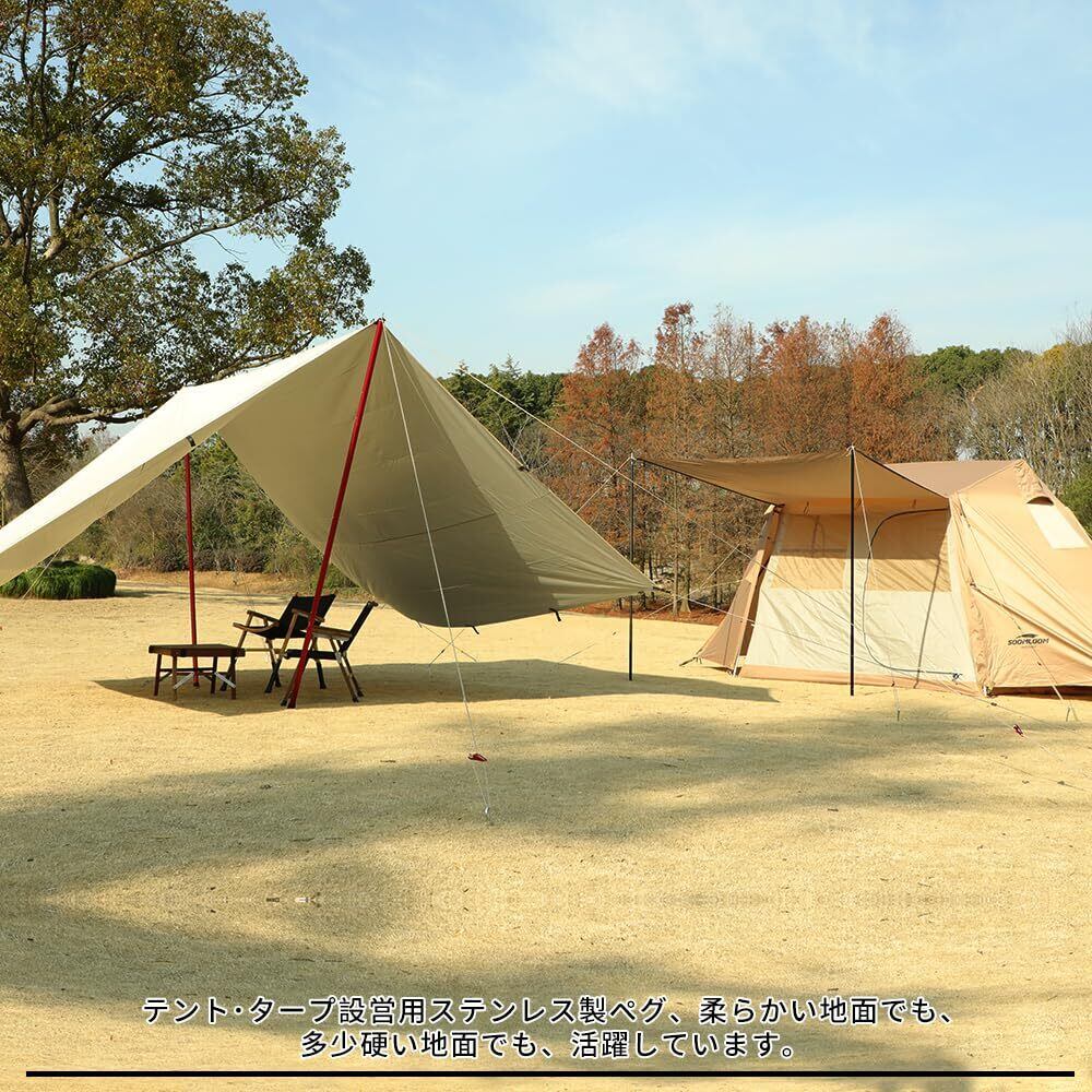 Soomloomステンレスペグ ステーク テント・タープ固定用 一体化 長さ20cm/25cm キャンプ設営用具 ペグセット 8本/16本入り