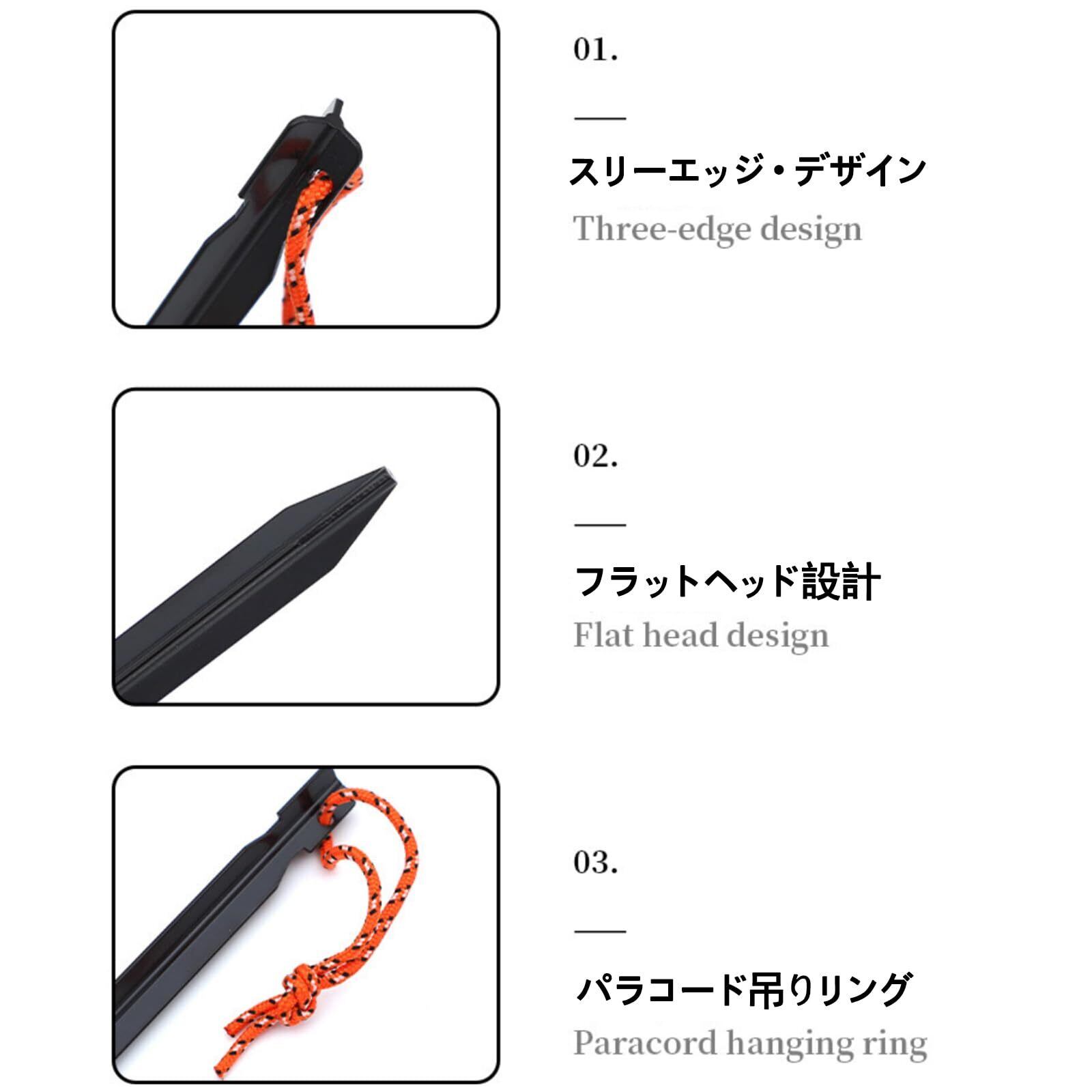 簡単に使える:鍛造ペグの特性により、簡単に地面に刺すことができます。また、取り外しも容易で、キャンプ環境の変化に応じて調整するのに便利です。