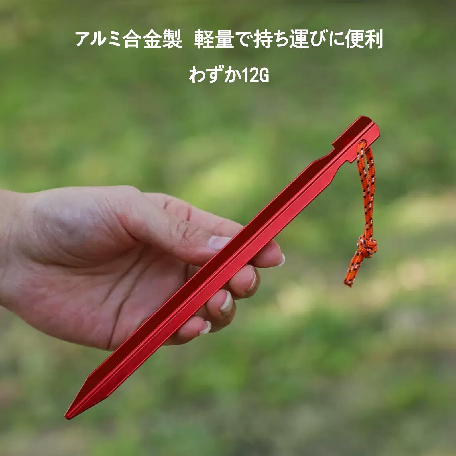 この製品はキャンプ用のペグで、鋭い先端を持っています。正しい取り扱いと設置方法に注意してください。