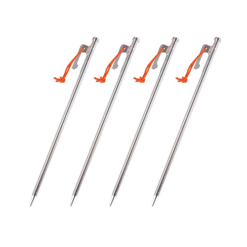 Soomloomチタン合金製ペグ長さ20cm/25cm/30cm・4本/6本/8本セットテント/タープ設営用フック付き丸い断面太いヘッド反射材入りの固定ロープ突き刺し引き抜き楽々軽量高強度耐食性耐久性キャンプアウトドアツール