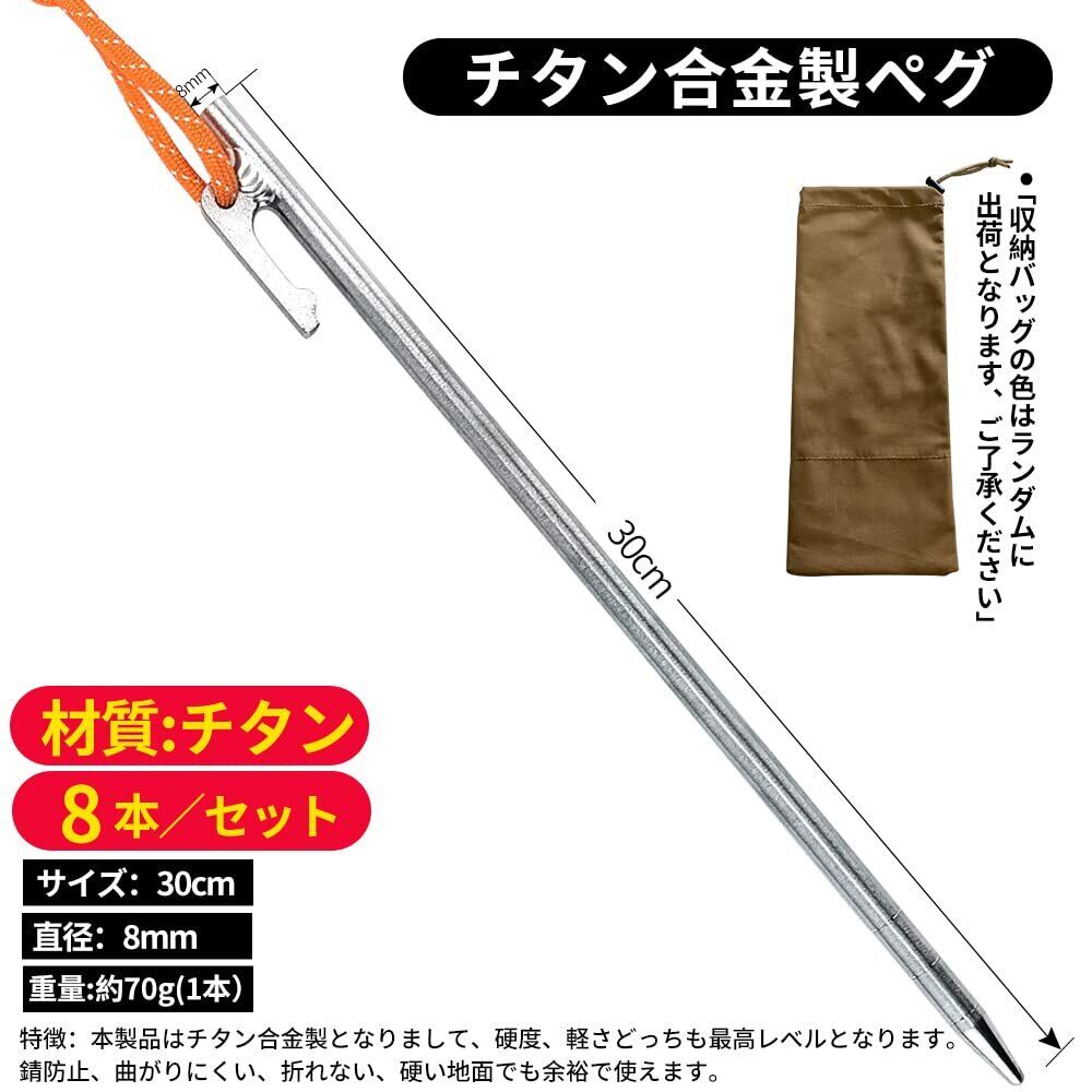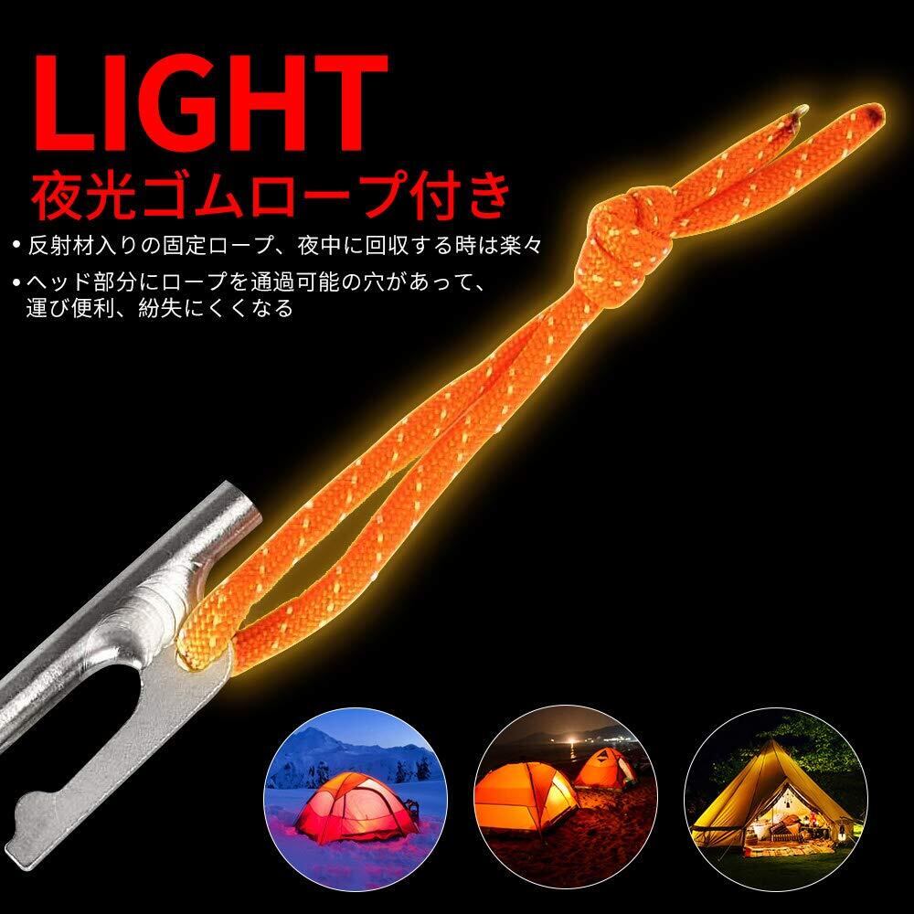 Soomloom ペグ チタン製 固定ロープ付き テント用 タープ用20/24/30/35/40㎝ 4本/6本/8本セット