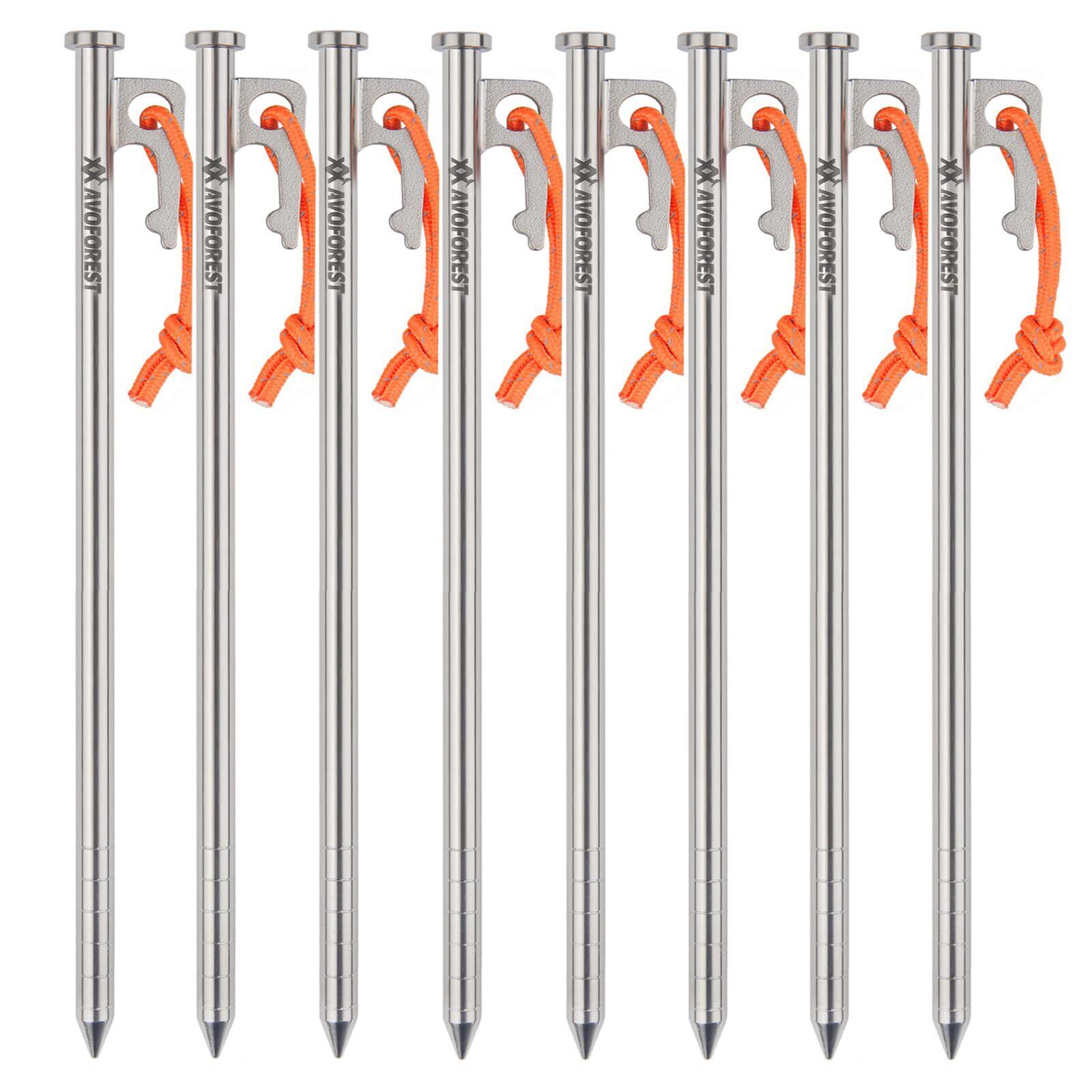 ペグ チタン製 AVOFOREST チタンペグ 太いヘッド 20cm 25cm 30cm 2本/6本/8本/16本 軽量 高強度 反射材入りロープ付き耐食性 キャンプ テント/タープ設営用 山地 砂利 草地 硬い地面対応可能(30cm8本)