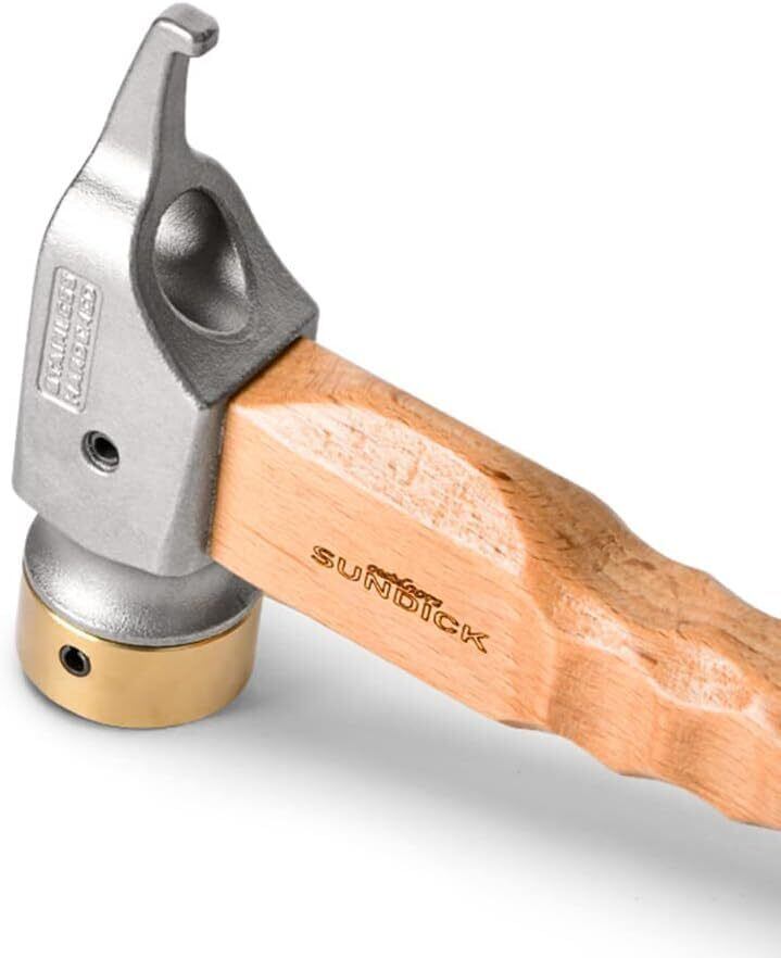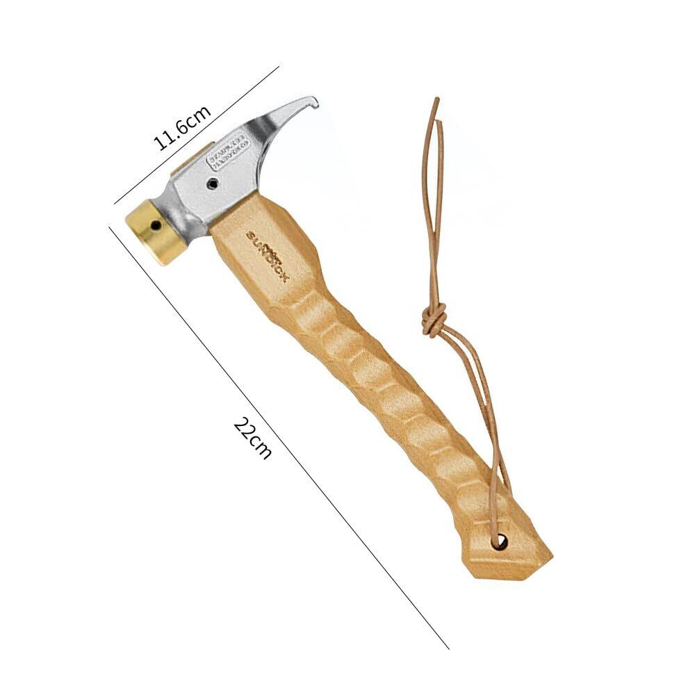 ペグハンマー ショートハンマー 軽量 小型 コンパクト キャンプ 木製ハンドル 名栗加工 真鍮ヘッド アウトドア ツーリング キャンプ 設営用具 テント用 登山 (22cm実木ハンドル付きステンレス銅ハンマー)