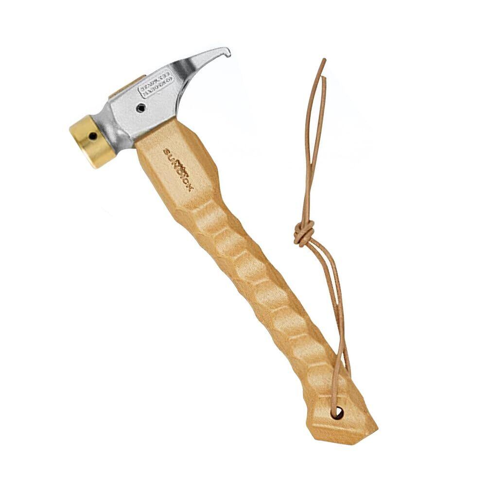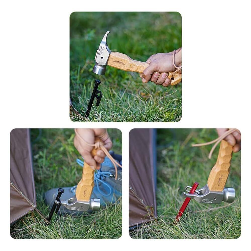 【高強度・衝撃吸収性に優れるSUS304ステンレス鋼製マルチハンマー】この多機能ペグハンマーは、SUS304ステンレス鋼製で、高温鋼材に強力な圧力をかけて優れた強度を持っています。焼き入れ加工済みで硬くて曲がりにくい強靭な特性があり、ペグを簡単に引き抜けます。真鍮ヘッド先端が衝撃吸収効果に優れており、衝撃を和らげ、腕への負担を軽減します。