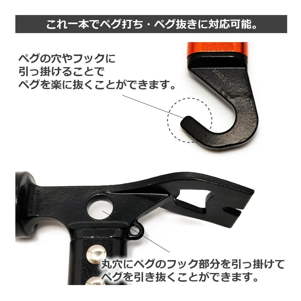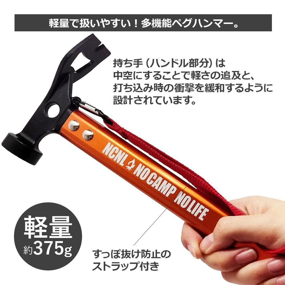 NCNL(NO CAMP NO LIFE) ペグハンマー テントハンマー キャンプハンマー 軽量 キャンプ ソロキャンプ アウトドア用品 キャンプ用品 ストラップ付き (オレンジ)