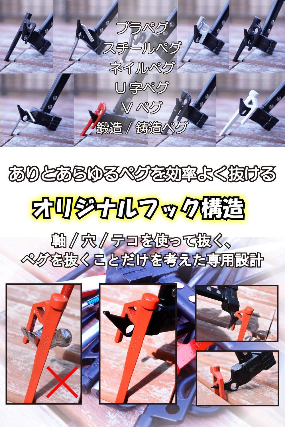 2種類のペグ抜きを装備していますので素早く作業ができます。