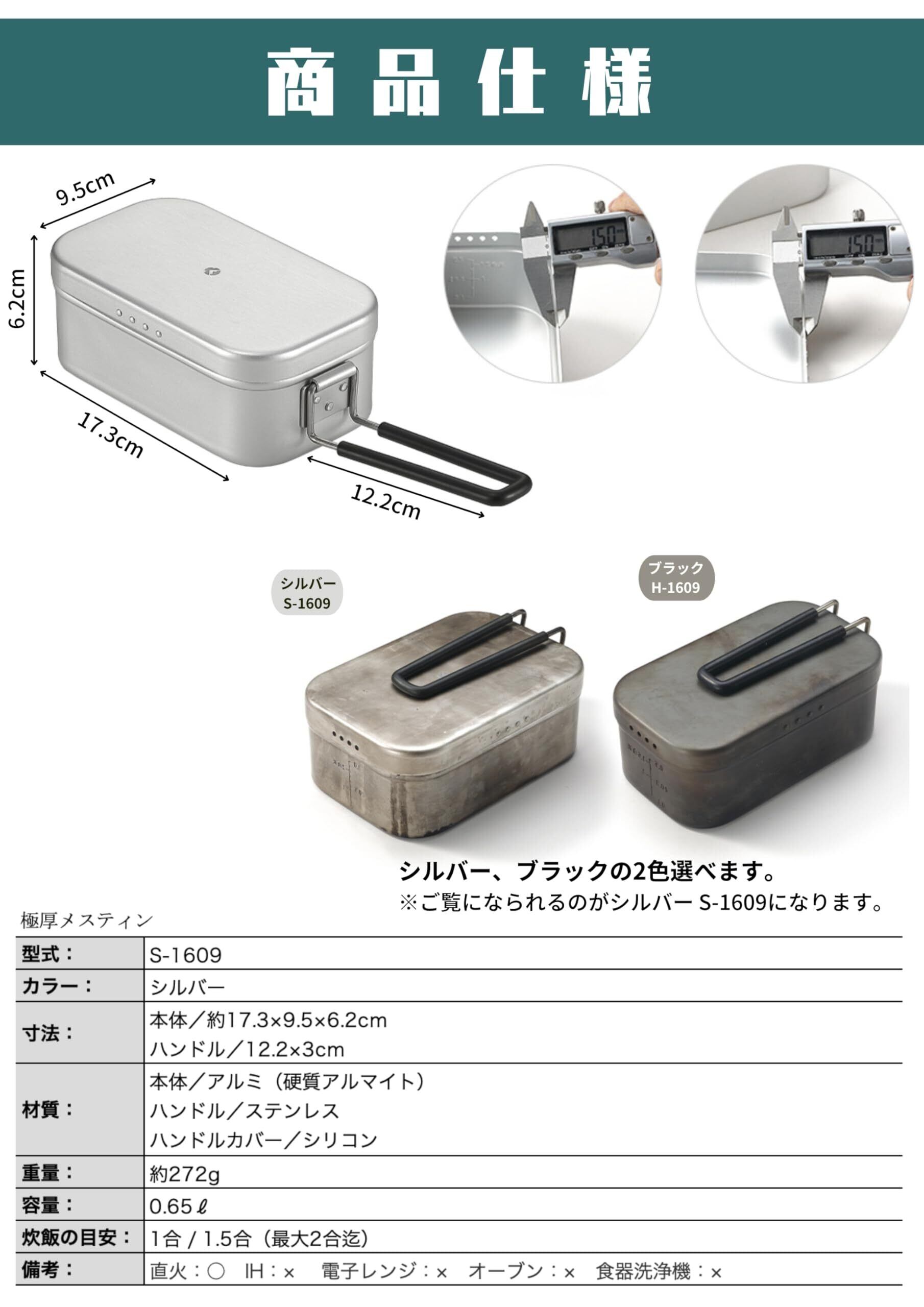 キャンピングムーン(CAMPING MOON) 極厚 メスティン 1合 バリ取り不要 吹きこぼれ防止溝 湯切り穴 付き アウトドア 飯盒 キャンプ 防災 S-1609