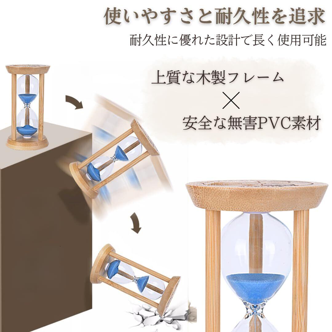 【使いやすさと耐久性を追求】上質な木材と無害なPVC素材を使用し、耐久性と安全性を両立した設計が魅力の砂時計です。コンパクトで持ち運びやすく、日常使いに便利。3分・5分・10分の計測時間から選べるため、用途に応じて最適な時間管理が可能です。