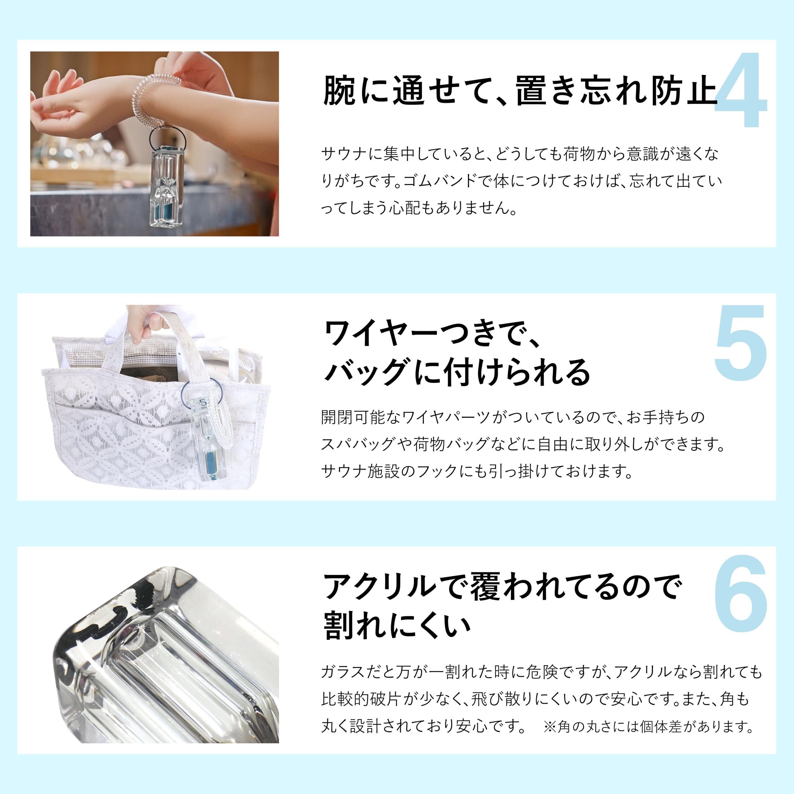 【サウナ以外でも使える砂時計】入浴時間の把握やヘアパックの時間把握、キッチン用としてもご使用いただけます。オブジェとして置いてもおしゃれです。流れる砂を見ることで癒し効果を得られます。コンパクトなので、持ち運びしやすく、バッグなどにつけてキーホルダーとしてもGOOD!
