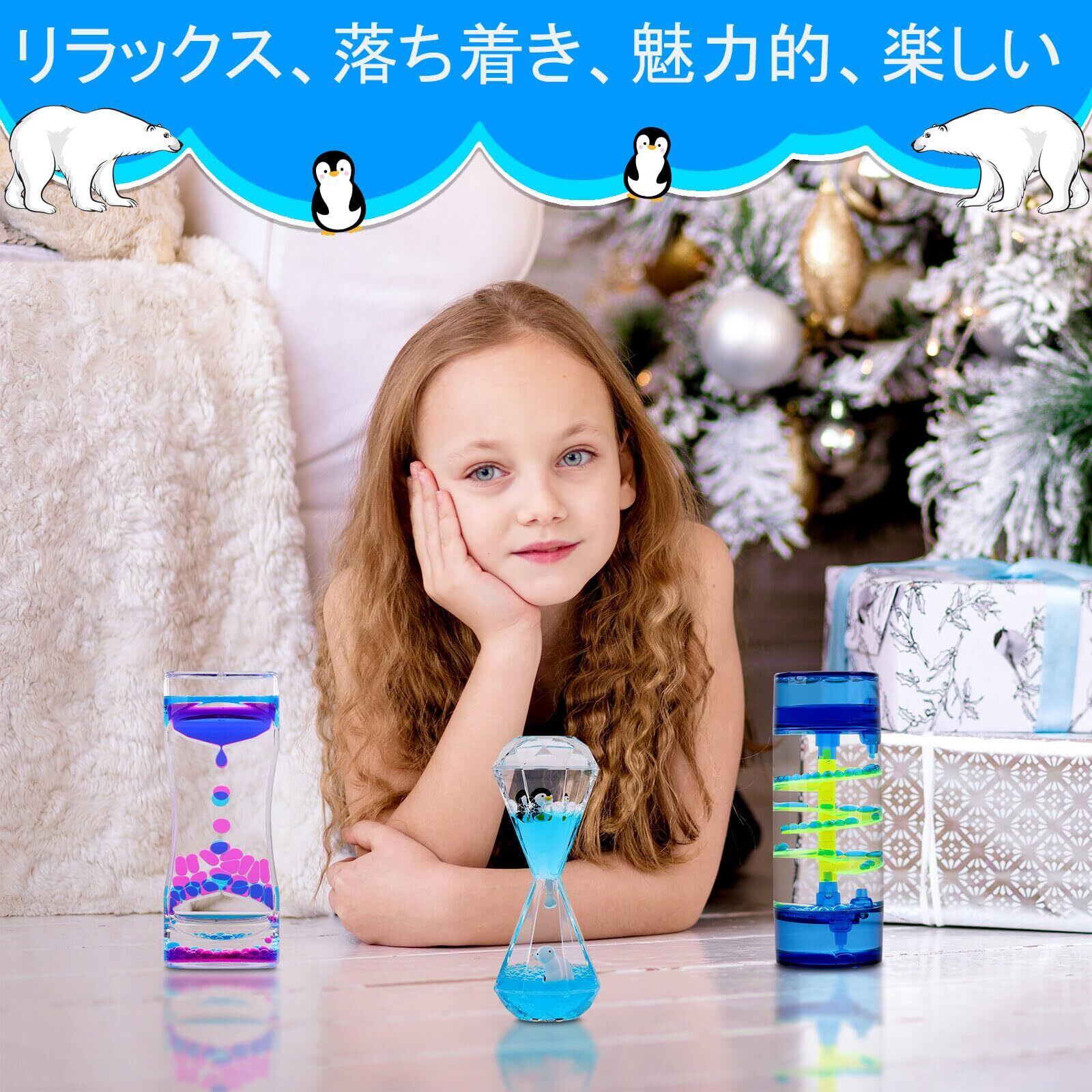 【最高の3種類の液体運動玩具】そのゆっくりとリズミカルな滴は、非常になだめる効果があり、実際に感覚の問題を持つ子供や大人を助けます。特別なニーズ、自閉症、ADHDの子供のための完璧な感覚のおもちゃを作ります。この液体の動きのタイマーのおもちゃはまた不安、圧力および退屈と戦うのを助けることができる