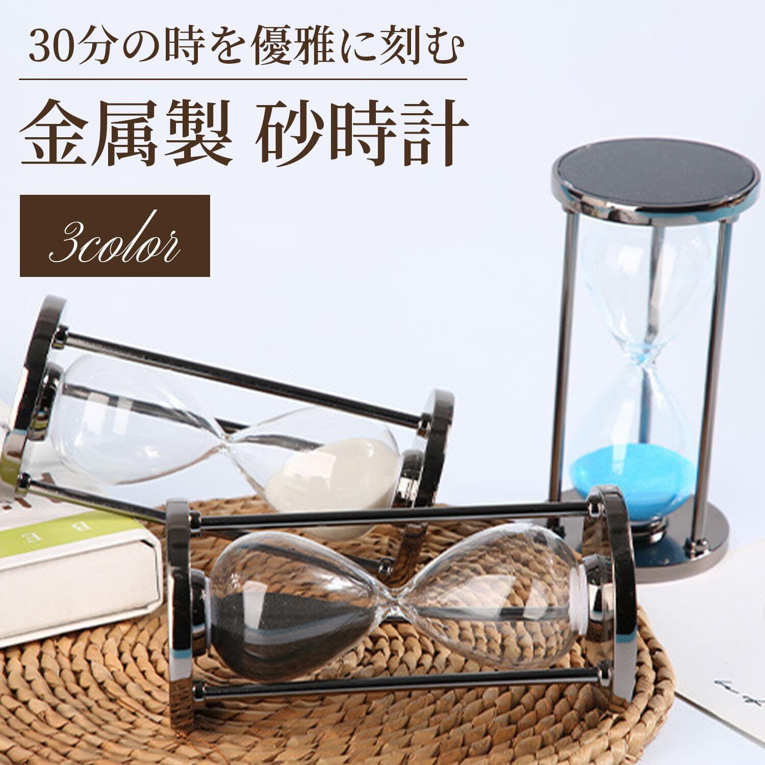 砂時計 30分 サンドタイマー 卓上 金属製 砂タイマー デスクトップ ホーム オフィス 教室 時間管理 おしゃれ 勉強 知育 (ブラック)