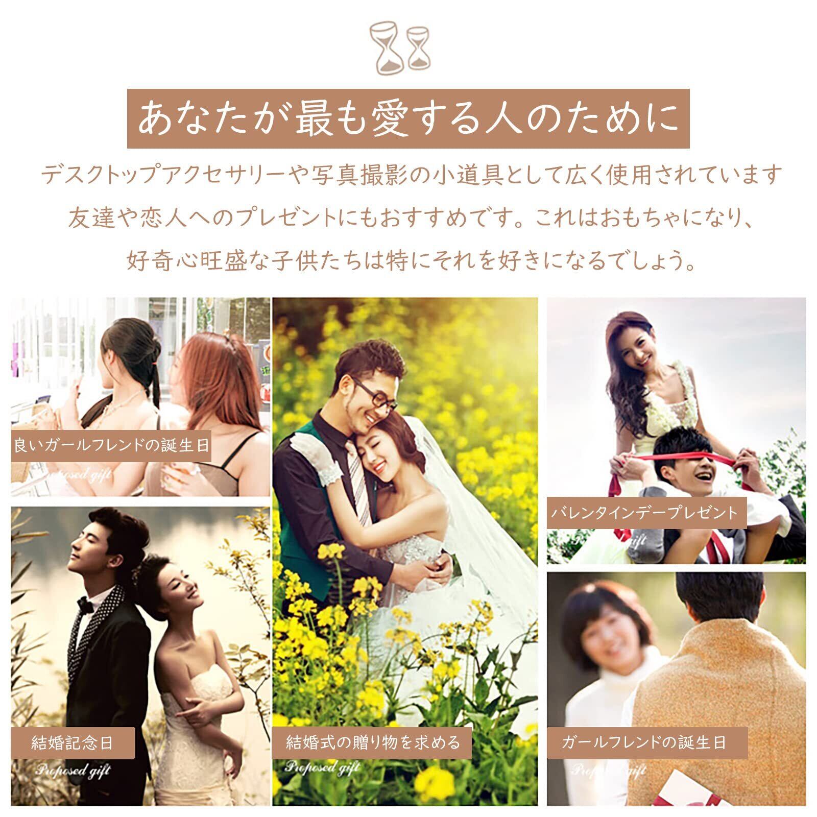 【幅広い用途】砂時計はデスクトップアクセサリーや写真撮影の小道具として広く使用されています。 砂時計は愛、友情、幸福を象徴しています。友達や恋人へのプレゼントにもおすすめです。 これはおもちゃになり、好奇心旺盛な子供たちは特にそれを好きになるでしょう。