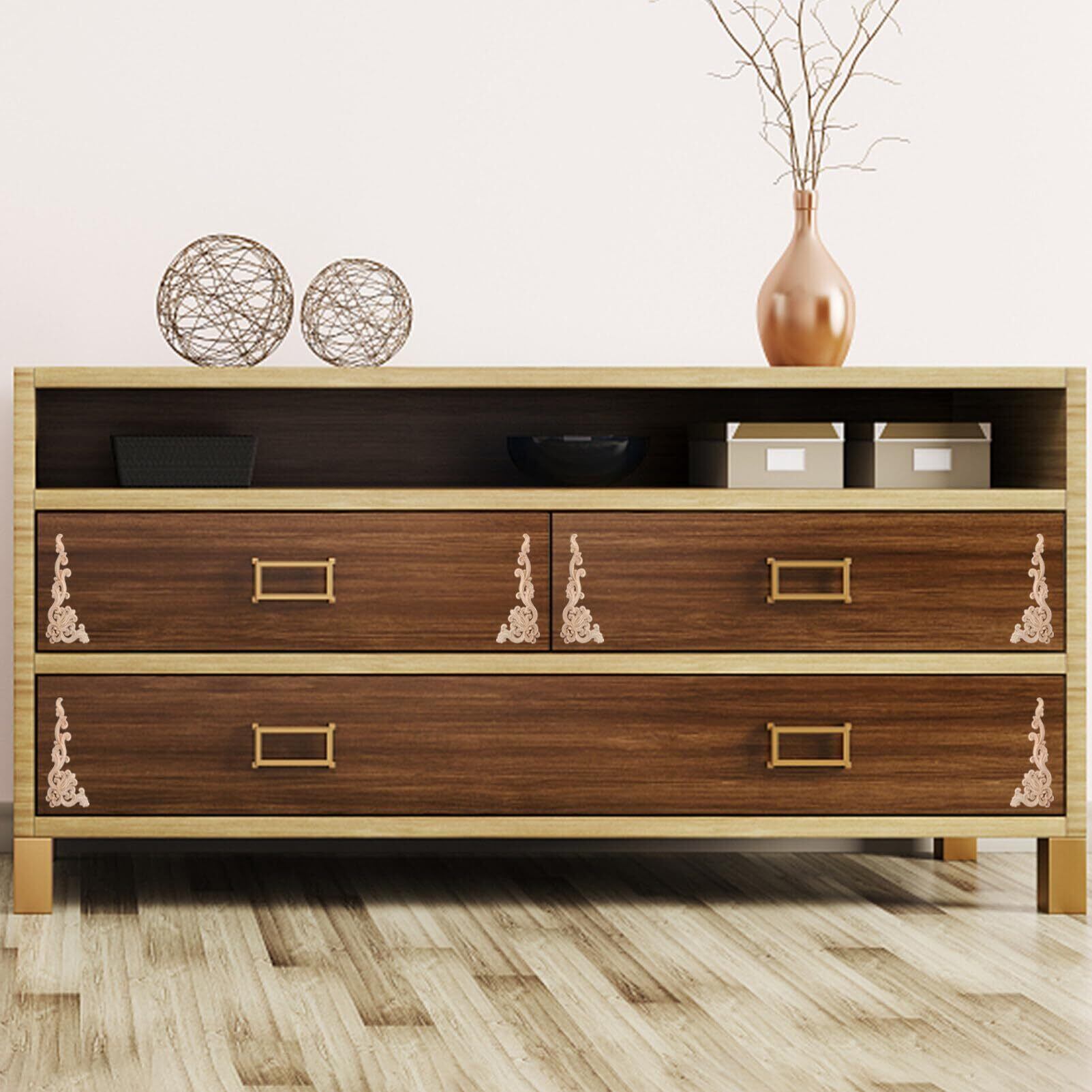 VORCOOL 木製アップリケ 8個セット 木彫り装飾 モールディング フレーム家具用 未塗装 デ ドア 壁 ミラー用 18X2.7X0.55インチ