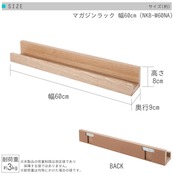ドウシシャ ピンで取り付けるマガジンラック ウォールシェルフ 幅60 壁を傷つけない 天然木製 壁掛け 飾り棚 耐荷重3kg おしゃれ 石膏ボード 簡単取付 本棚 洗面所 子供部屋 調味料 幅60×奥行9×高さ8cm NKB-M60NA 賃貸 DIY