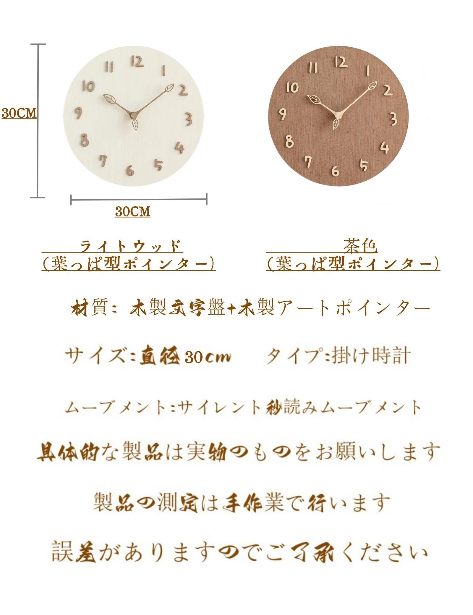 掛け時計 木 おしゃれ 北欧 静音 時計 壁掛け 丸型 フレームレス かわいい 12インチ(直径30cm) 天然 無垢材パネル 3D立体数字 創造的な木の枝緑の葉パターン無垢材の手 連続秒 モダンなホームオフィス 居間 寝室 書斎 室内装飾 お祭り 贈り物 茶色(葉っぱ型ポインター))
