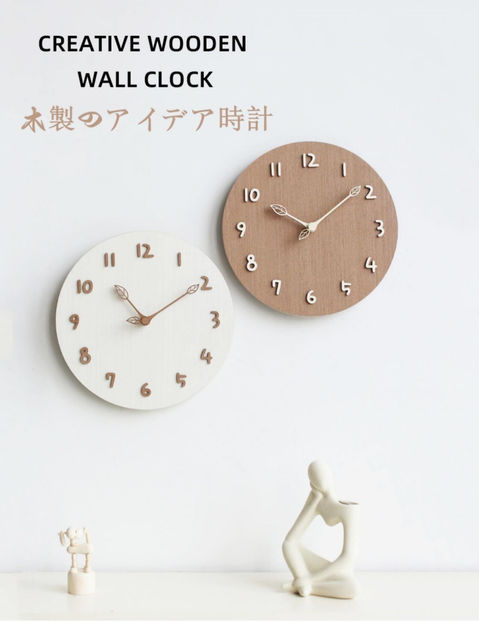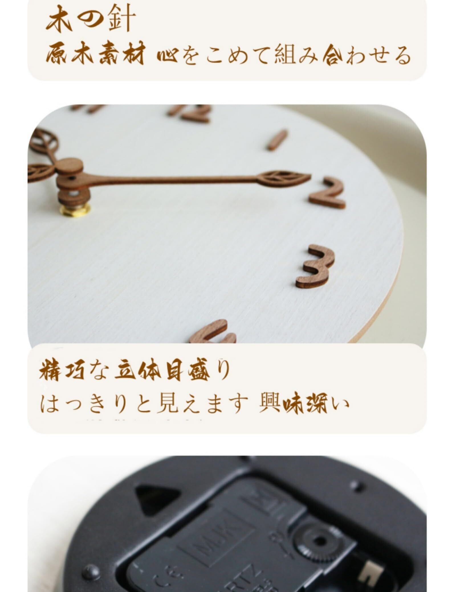 2.【文字盤】:純木の文字盤、シンプルでナチュラル、ナチュラルウッドの風合い、均一な色、クリアで美しい。