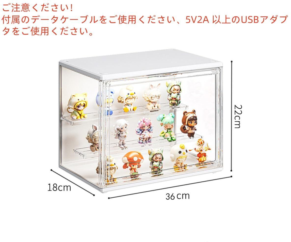 【LED照明フィギュアケース】 LED 機能搭載 上から光が当たり、ケース内のコレクションがよりリアルに映える。人感センサーモードはスイッチ操作・手拍子・叩く動作などで簡単起動 30秒後に自動的に消灯、いつでも点灯可能。上下のタンデムデザイン、1本のワイヤーで複数のスタッキングが可能。ご注意ください!属のデータケーブルをご使用ください。
