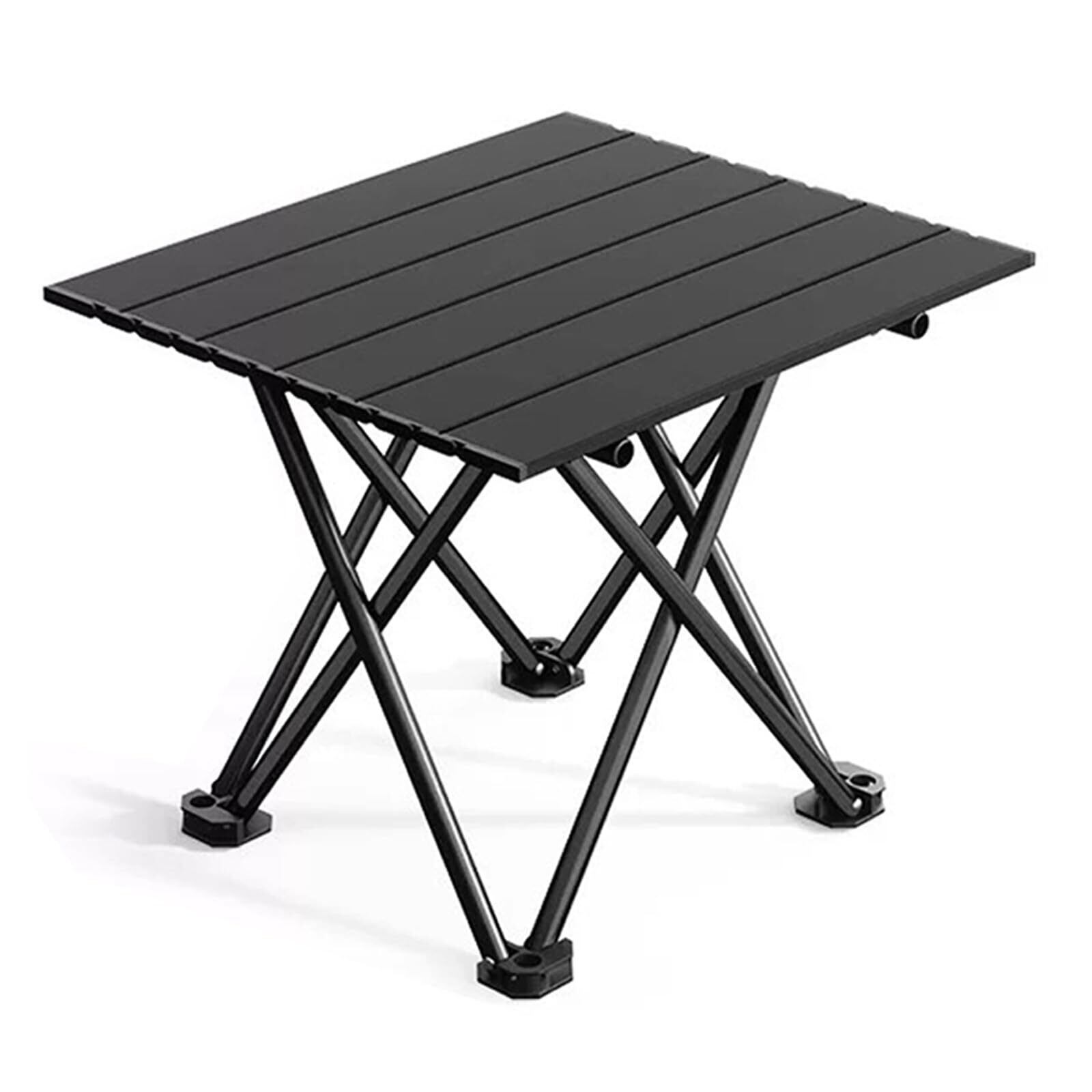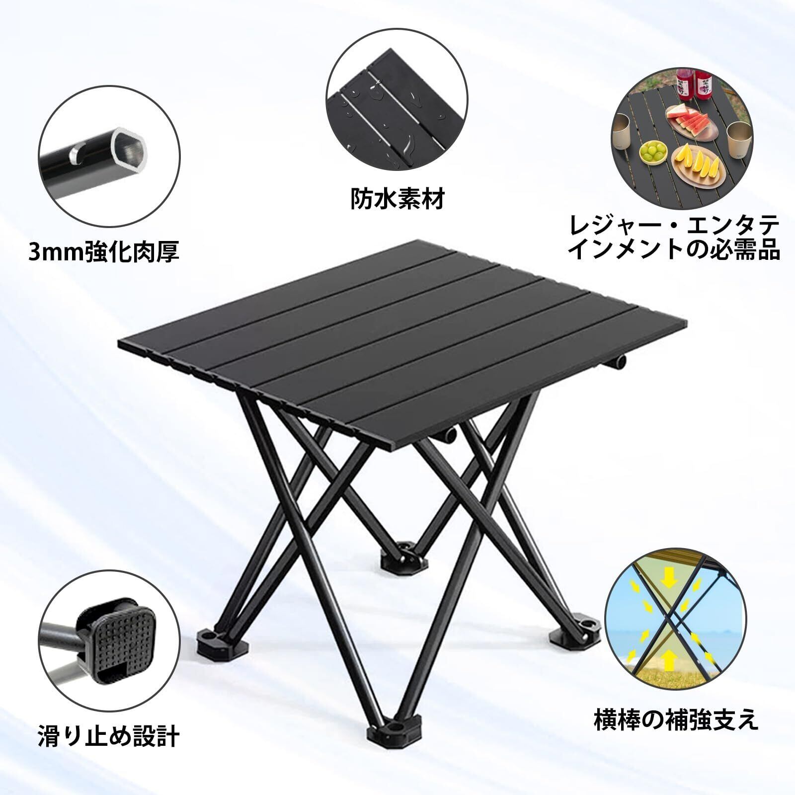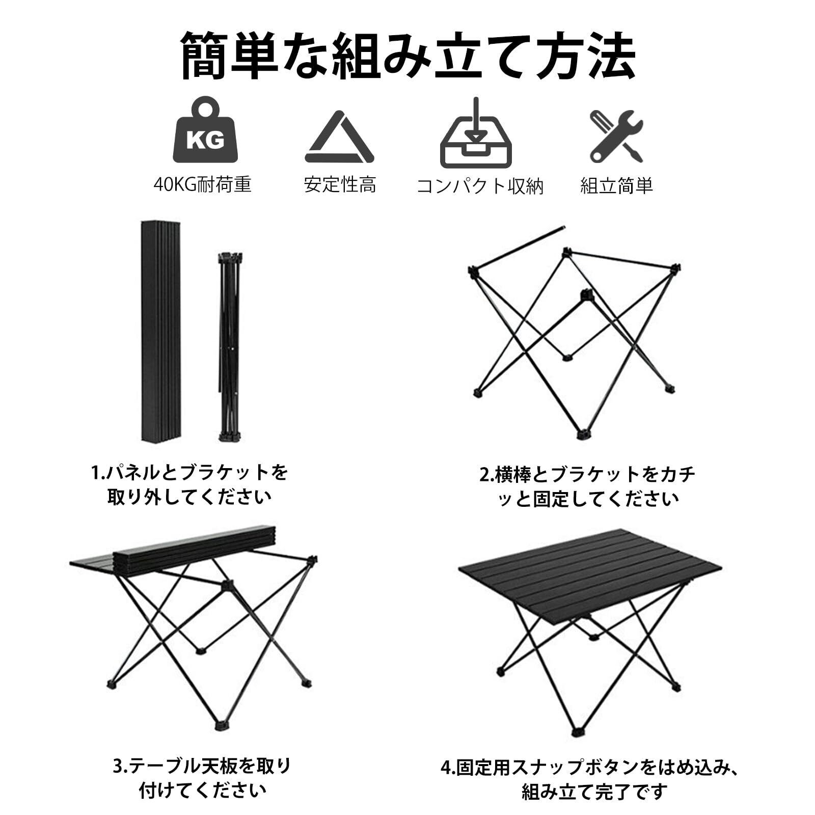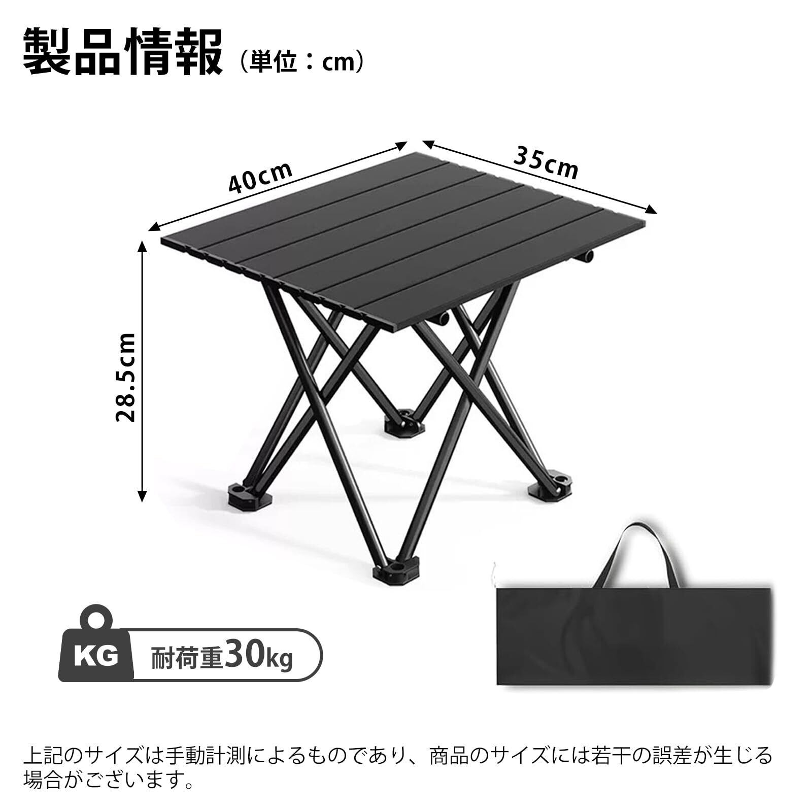 キャンプテーブル 折りたたみ式 アルミ ロールテーブル コンパクト 超軽量 アウトドア ハイキング BBQ バッグ付き 耐荷重30kg ソロキャンプ 組み立て簡単 収納袋つき (ブラック, S)