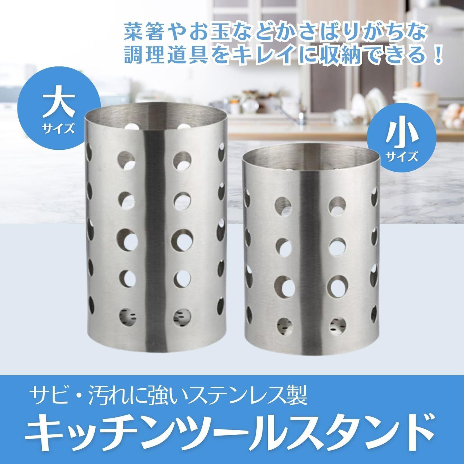 側面・底面ともにパンチング加工で水はけが良く、通気性にも優れたキッチンツールスタンド。大・小の2サイズ展開。