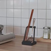 【多機能収納スタンド】お玉、鍋蓋、菜箸、しゃもじ、包丁、まな板などの調理器具を一括で収納できる万能スタンド。キッチンの整理整頓に最適。