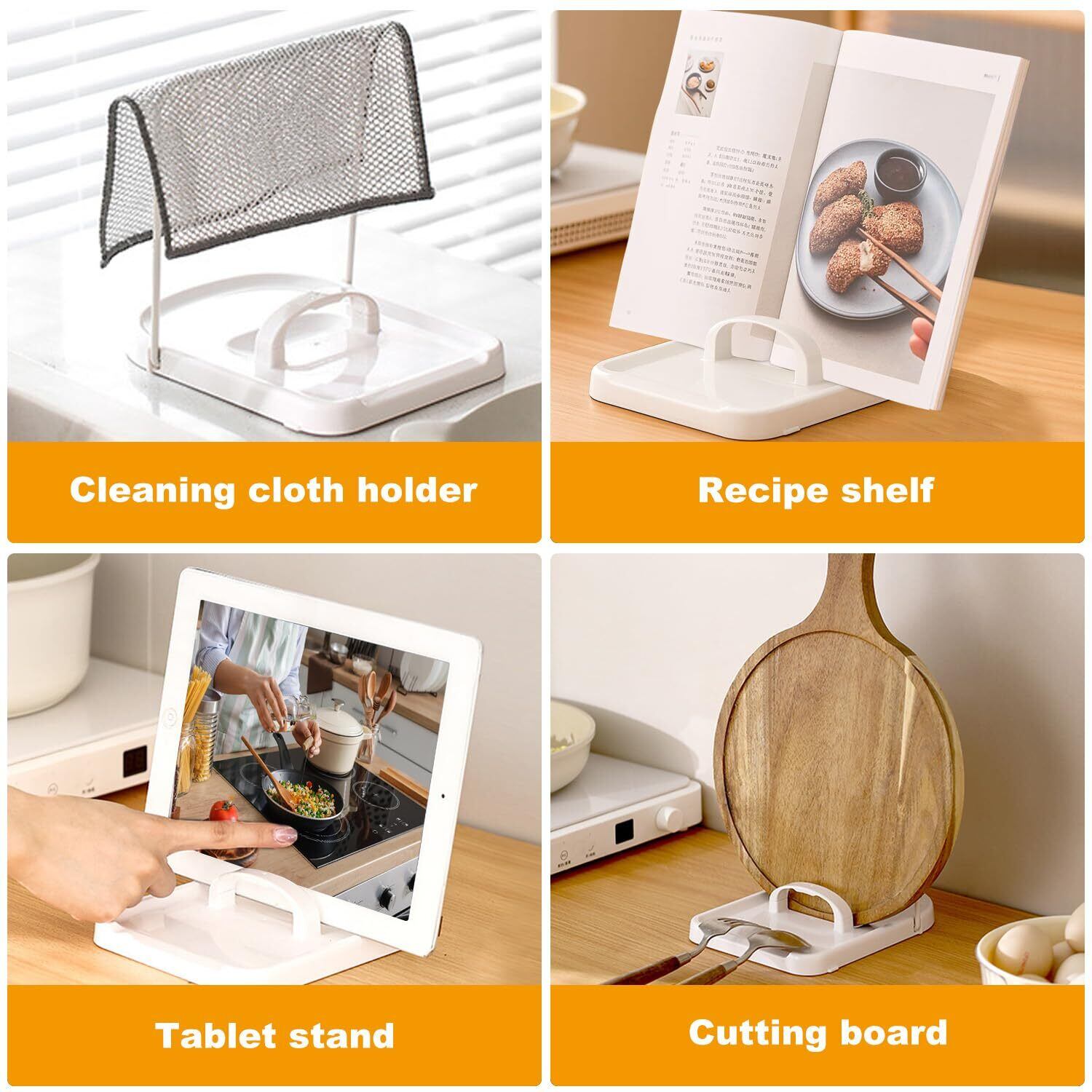 【多機能収納スタンド】鍋蓋ホルダーとしてだけでなく、布巾ハンガー・タブレットスタンド・レシピホルダーなど様々な用途で活用可能。