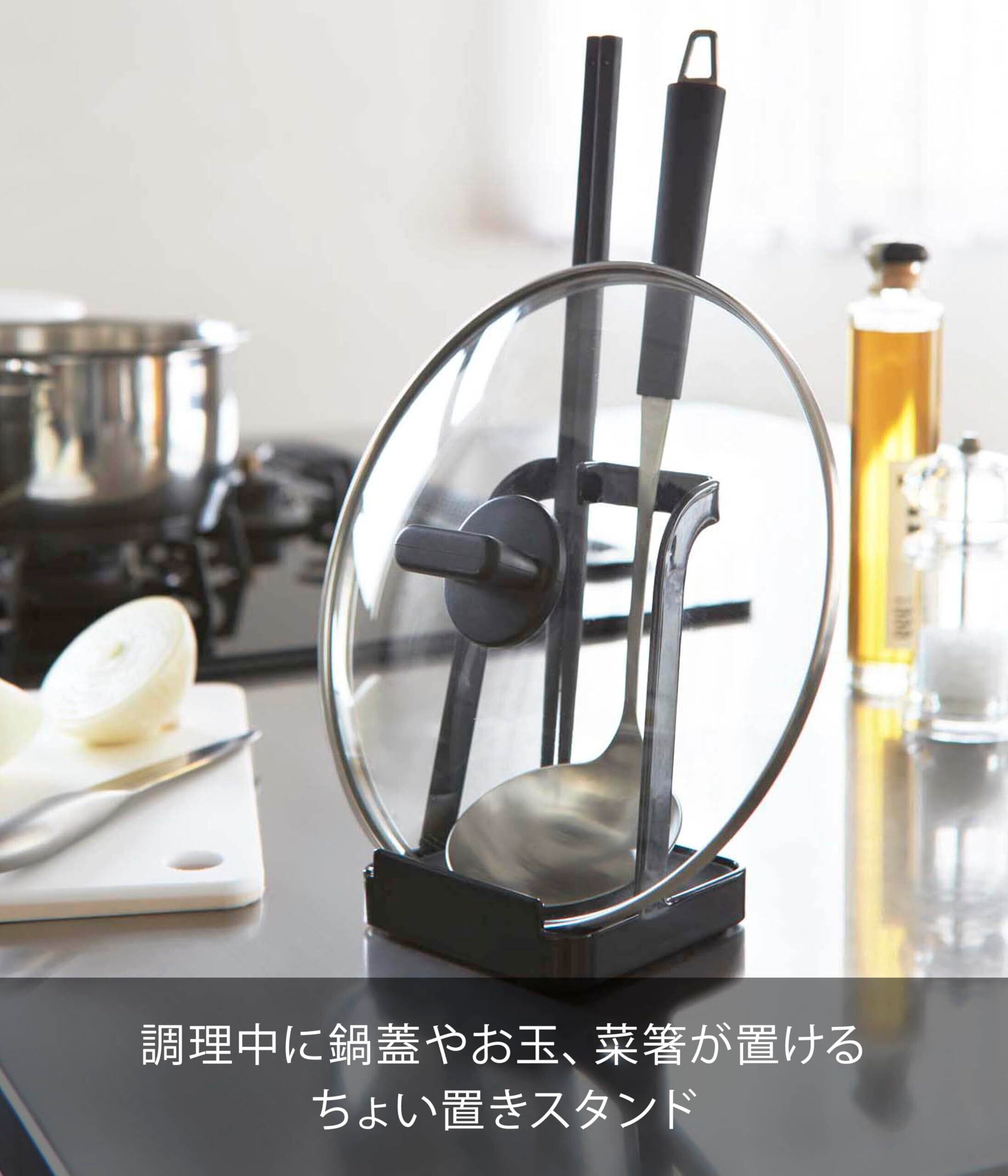 山崎実業(Yamazaki) お玉 & 鍋ふたスタンド ブラック 約W10×D10×H15cm タワー tower お玉置き 鍋ふた置き スタンド 2249