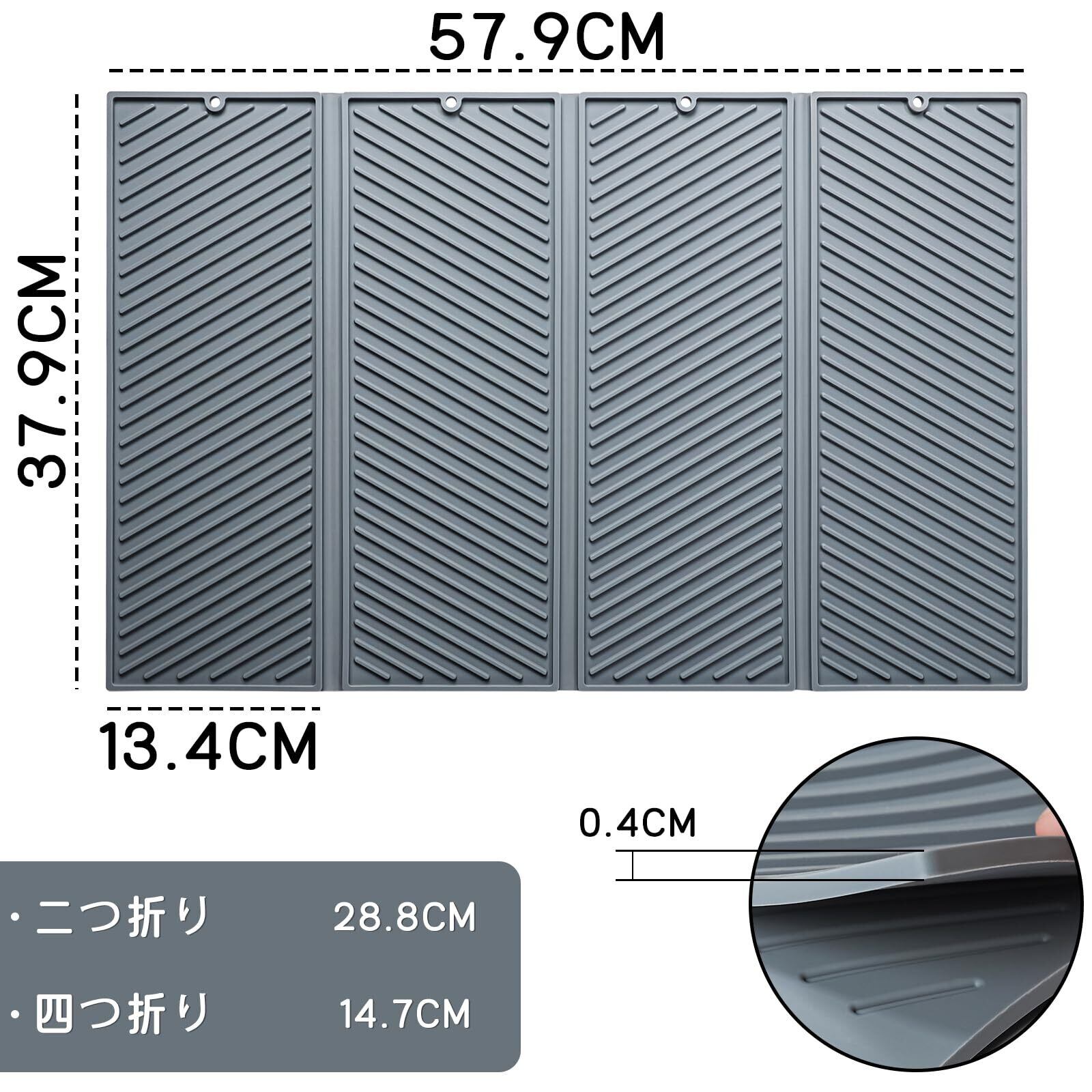水切りマット 折りたたみ シリコン製シンクマット 滑り止め 58cm×38cm 吸水 食器 鍋 コップ乾燥用 壁掛け可能 キッチン用 グレー (グレー, 58*38)