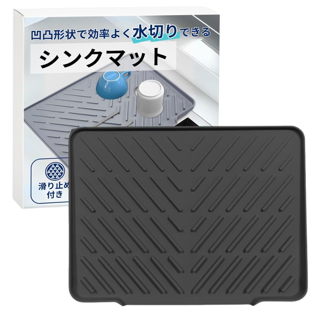 ateena 水切りマット キッチン 食器 水切り シンクマット シリコン 耐熱 シリコンマット 流し台 台所 調理台 (ブラック, 40cm×30cm)