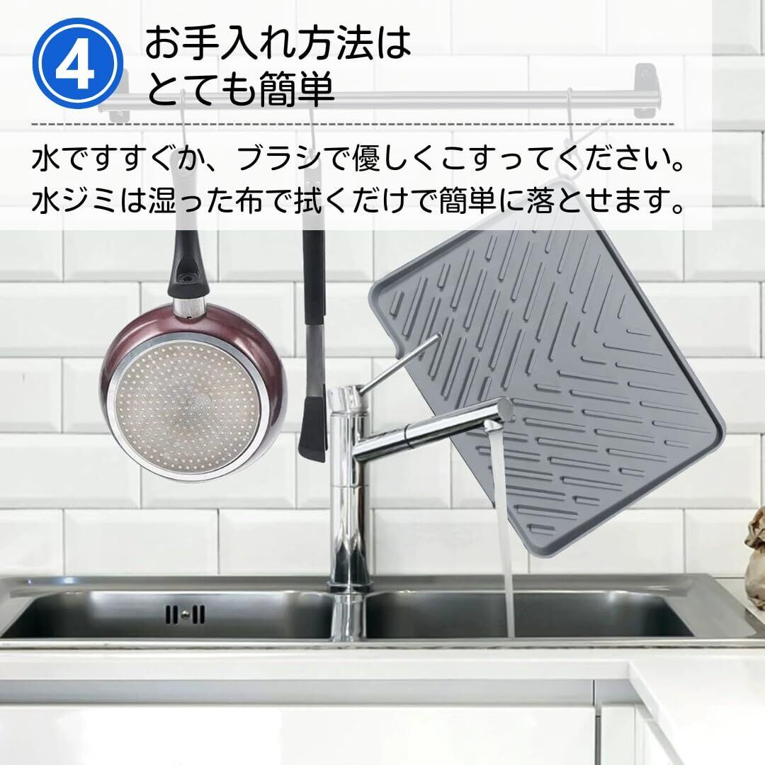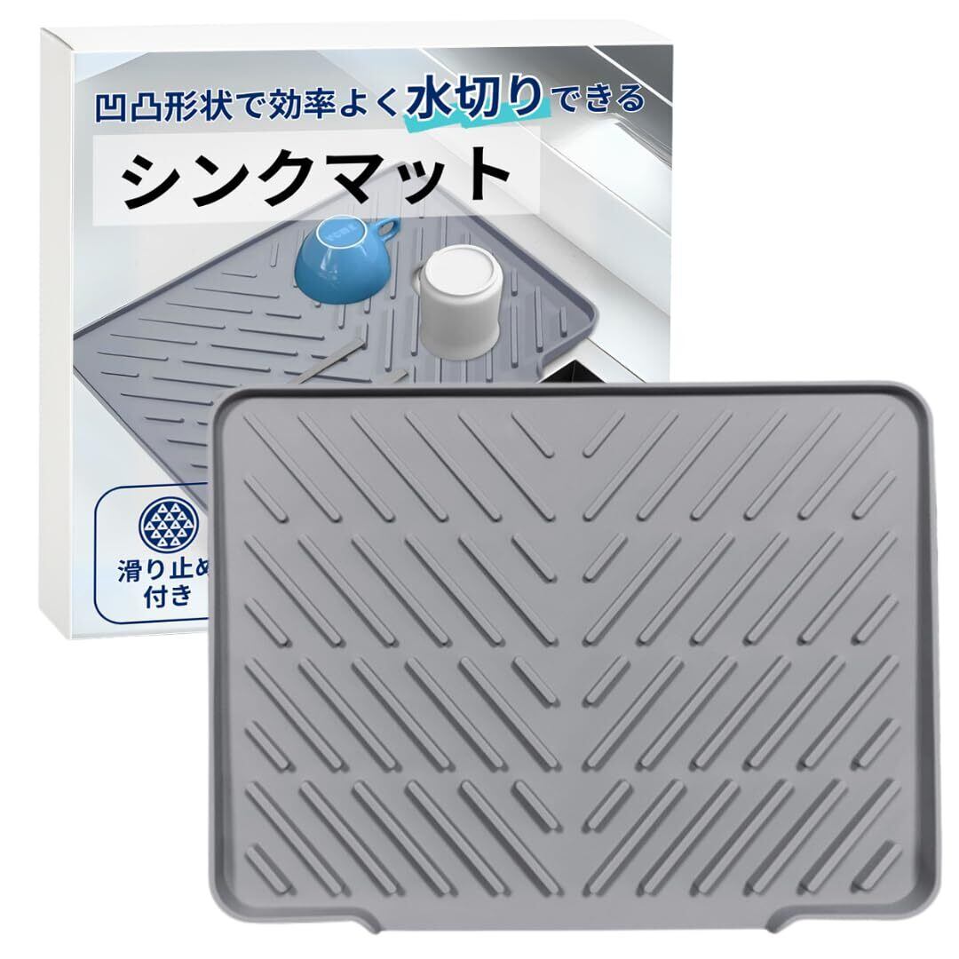 ateena 水切りマット キッチン 食器 水切り シンクマット シリコン 耐熱 シリコンマット 流し台 台所 調理台 (グレー, 40cm×30cm)