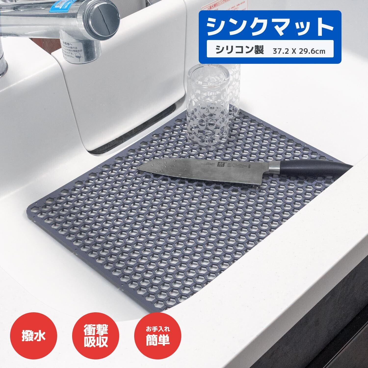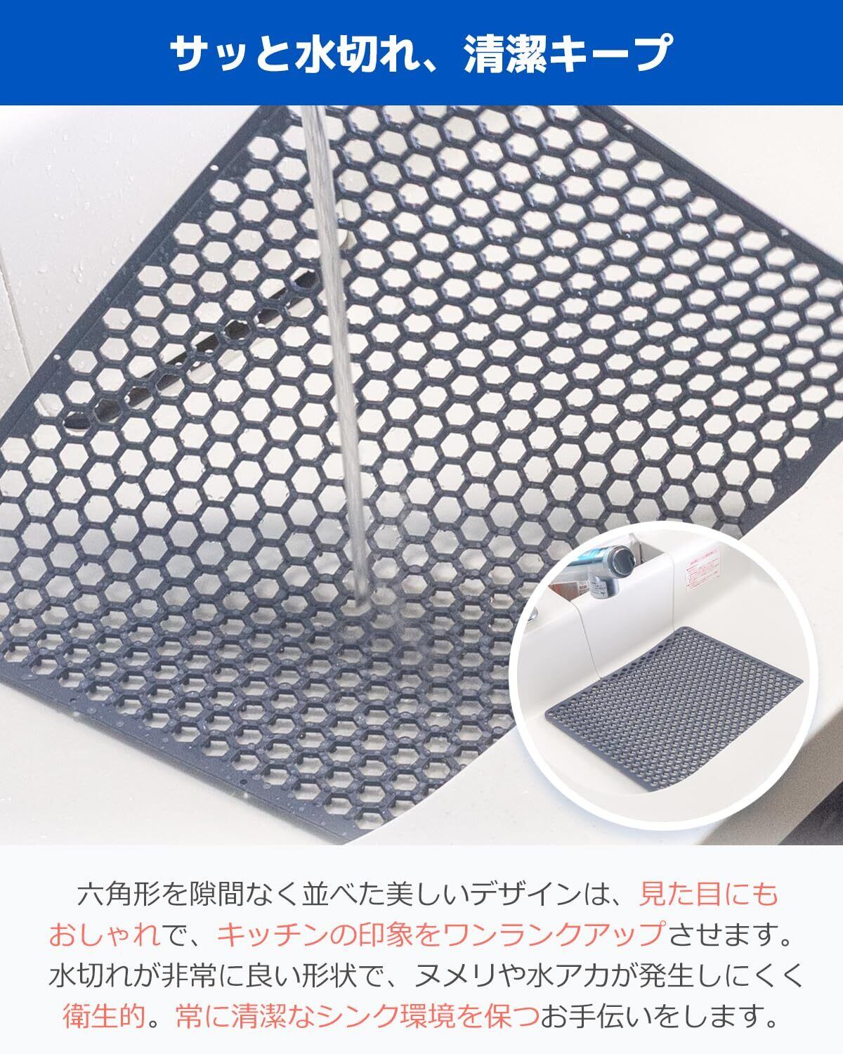 RK キッチン シンクマット シリコン 断熱マット シリコン品質管理認証取得済 滑り止め シンク 用 流し 保護 マット キズ 汚れ防止 耐熱温度230度 調理台 流し台 水切り 衝撃吸収 37.2cm x 29.6cm グレー