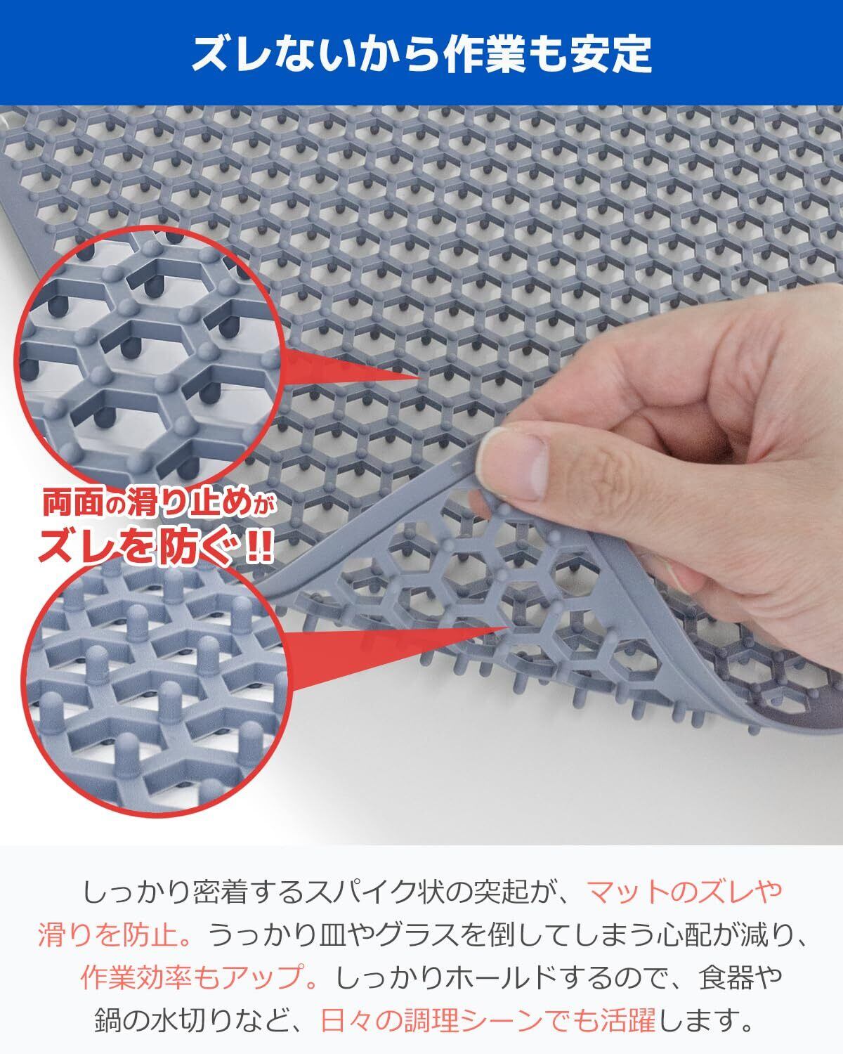 素材:シリコン、サイズ:約29.6cm x 37.2cm、重量:200g、耐熱:230℃、耐冷温度:-45℃。