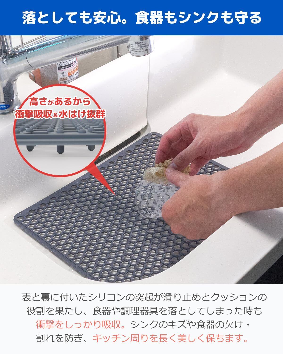 鍋を洗う時、包丁やハサミを洗う時、シンク内に傷をつけたくないときにサッと1枚敷くだけで いつもより安心して洗い物や片付けができる。
